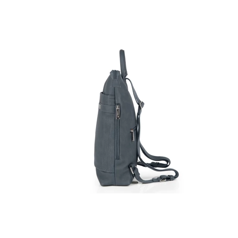 Gabol Laia női hátizsák. Elegáns, sajátos stílussal rendelkezik. Egy fő- és három mellékrekesszel bír, a vállpántok hossza egyszerűen állítható. A hátizsák főrekeszét cipzáras minizseb gazdagítja. Elülső, hátulsó, és oldalsó mellékrekesze is remek hely személyes tárgyaink tárolására. Biztonsági funkciót tölt be a táska pántjának SAFE feliratú végén található karabinerje, amit például bevásárlókocsihoz, vagy akár az étteremben a székhez tudunk rögzíteni.