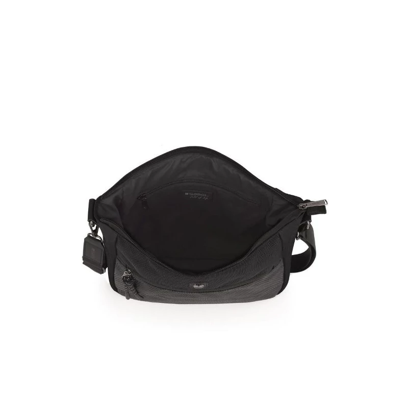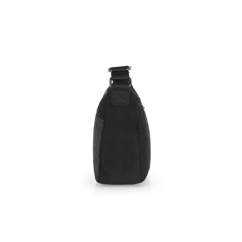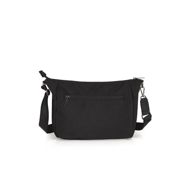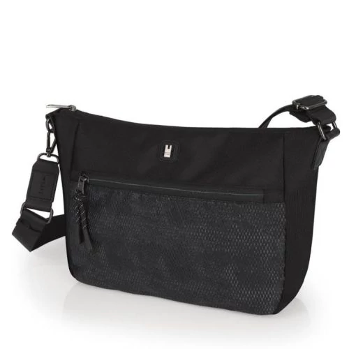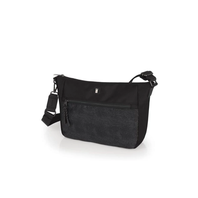 A Gabol Zenit női táska cseppálló anyagból készült. Trendi, fiatalos stílussal és mintázattal rendelkezik. Egy fő- és két mellékrekesszel bír. Főrekeszében egy cipzáros zsebet találunk, valamint helyet kapott benne két kisebb nyitott zseb is. A táska elülső, illetve hátulsó mellékrekesze remek helyet biztosít apró személyes tárgyaink tárolására. Biztonsági funkciót tölt be a táska pántjának SAFE feliratú végén található karabinerje is, amit például bevásárlókocsihoz, vagy akár az étteremben a székhez tudunk rögzíteni.