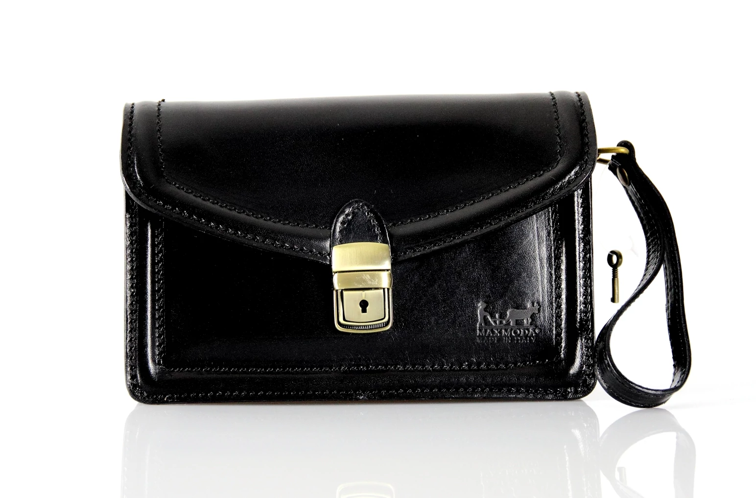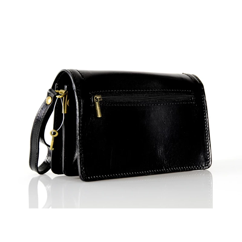Az autóstáska nem ment ki a divatból, a mai napig ugyan olyan kedvelt táska a férfiaknál, mint fénykorában. Nagyszerűen elférnek benne a személyes okmányok, a mobiltelefon, pénztárca, kulcsok. Ez a fekete színű autóstáska több zsebes, csatos záródású és valódi bőrből készült, kulccsal zárható, a kulcsot küldjük a táskához. Belül két fő rekeszes, melyeket egy cipzáras válasz zseb határol el egymástól. Tehát belül összesen három zseb van. Egy külső cippes zseb még a hátfalán.