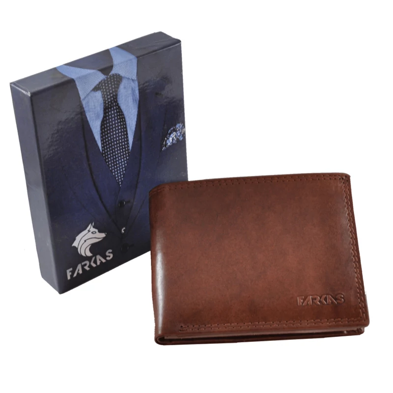 Kiváló minőségű bőrből készült, elegáns pénztárca RFID védelemmel. Belsejében két rekeszes papírpénztartó, egy patenttal nyíló aprópénztartó, kettő igazolványtartó hely, egy kártyatartó rész található. 3 kártyának van benne hely. Elegáns, kék színű díszdobozban szállítjuk.