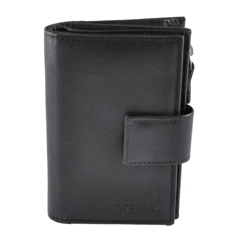 Kiváló minőségű bőrből készült, álló fazonú bőrpénztárca RFID védelemmel. A tárca egy patentos átkapcsoló fülecskével nyílik. Belül lapozható kártyatartó rész található. A papírpénztartó 1 rekeszes, összesen 13 db kártyatartó hellyel és négy igazolványtartó hellyel rendelkezik. A pénztárca hátulján cipzárral nyílik a két rekeszes aprópénztartó. A pénztárca hátulján egy további cipzáras zseb található.