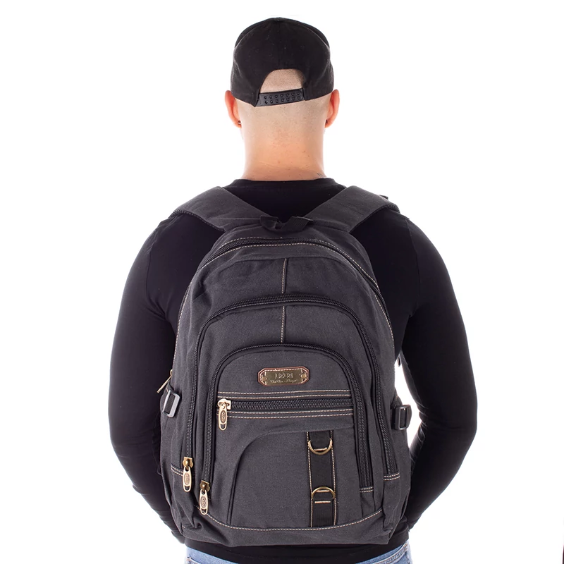 Nagyméretű Deda Bags hátizsák erős vászon anyagból, praktikus tárolórészekkel, sok zsebbel.