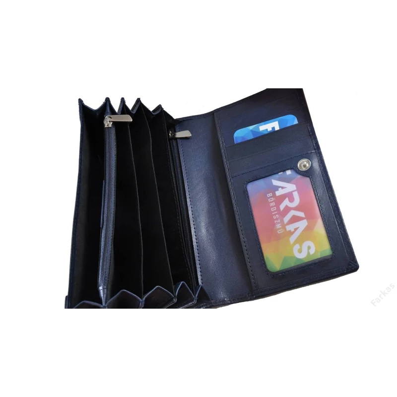 Nagy méretű, brifkó fazonú női pénztárca, mely kiváló minőségű bőrből készült. Fedele patenttal nyitható. Ezt a fazont azoknak ajánljuk, akik sok papírpénzt hordanak maguknál és kevesebb aprópénzt illetve kártyát! A papírpénztartó 5 rekeszből áll, így bőven van hely a különböző értékű pénznek. Az aprópénztartó csupán egy rekeszes. Összesen 5 kártyatartó hellyel illetve 2 nagyobb, igazolványtartó zsebbel rendelkezik a tárca. Ezen felül még két kisebb cipzáras zseb is van benne. Színes, Farkas feliratú díszdobozban szállítjuk.