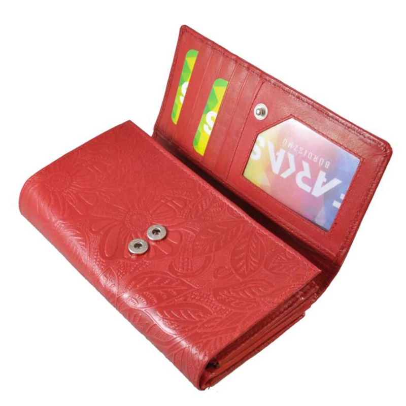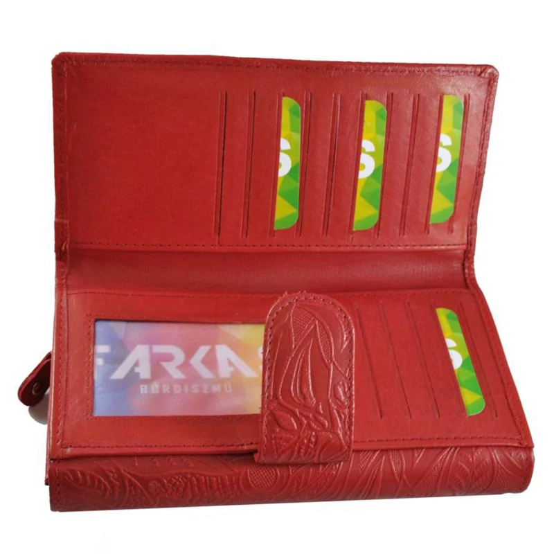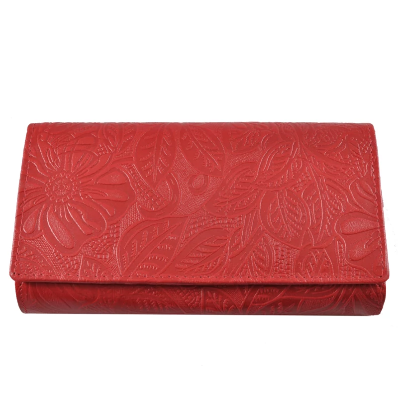 Nagy méretű női pénztárca, mely kiváló minőségű bőrből, gyönyörű nyomott virágmintával készült. Saját termékünk, így szeretettel ajánljuk azoknak a vásárlóinknak, akik szeretik a minőséget és az egyediséget. A pénztárcához igényes díszdoboz is jár. Tökéletes azoknak, akik sok kártyát és igazolványt tartanak maguknál.