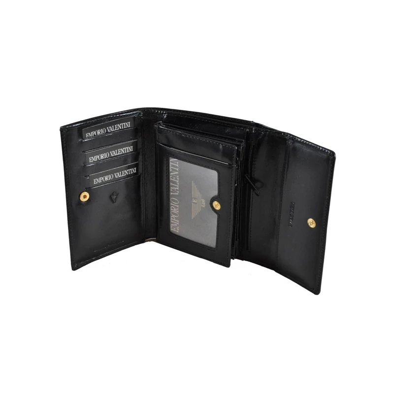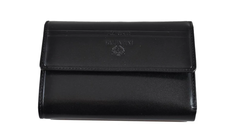 Elegáns női pénztárca kiváló minőségű olasz bőrből. Fedele patenttal nyitható. Belsejében több papírpénztartó, cipzárral nyitható aprópénztartó és több kártyatartó illetve igazolványtartó található. Fekete díszdobozban szállítjuk.