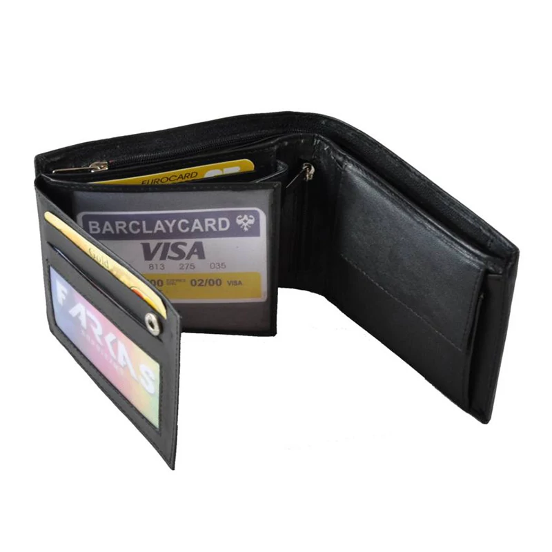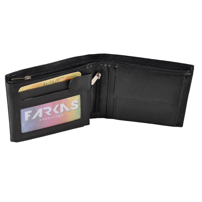 Kiváló minőségű, kellemes tapintású bőrből készült férfi pénztárca több színben. Belül hagyományos elrendezésű. Két rekeszes papírpénztartóval, két cipzáras zsebbel, egy patenttal nyíló aprópénztartóval és egy könyvszerűen lapozható kártyatartó résszel is rendelkezik. Összesen 10 kártyának van benne hely. Díszdobozban szállítjuk.
