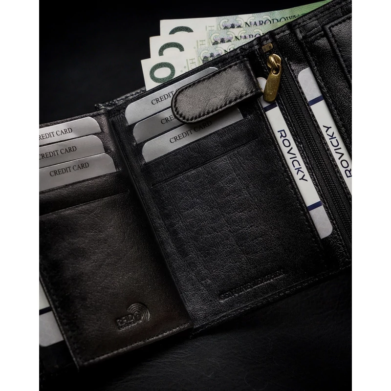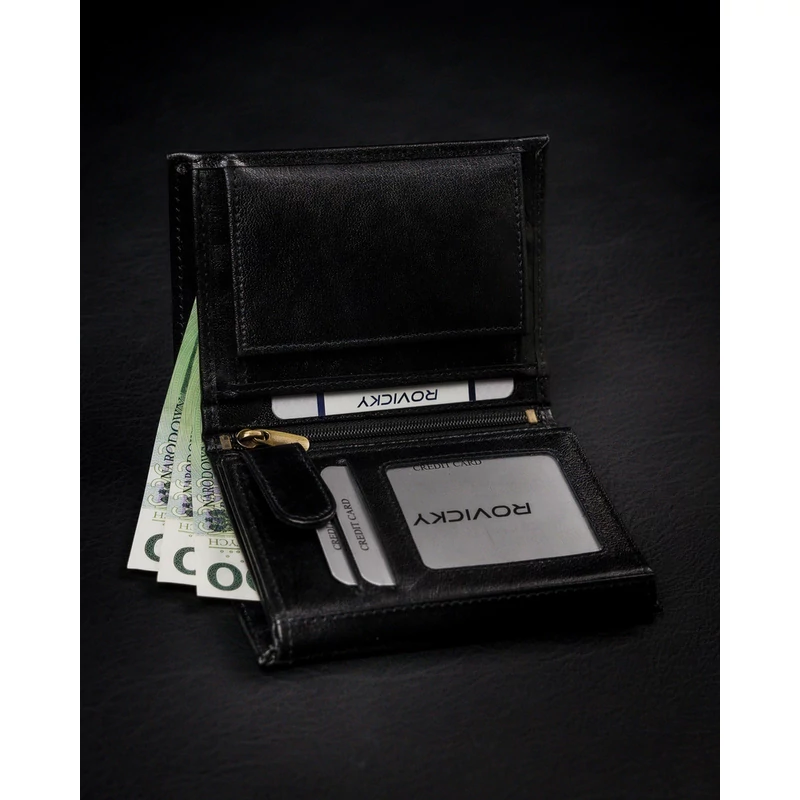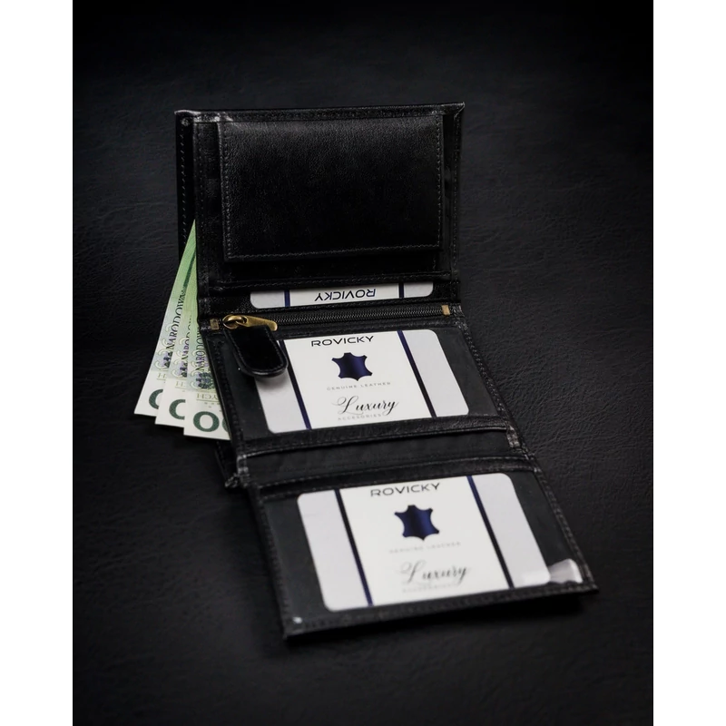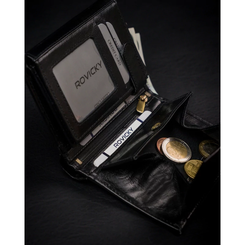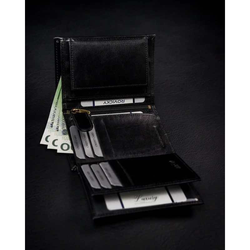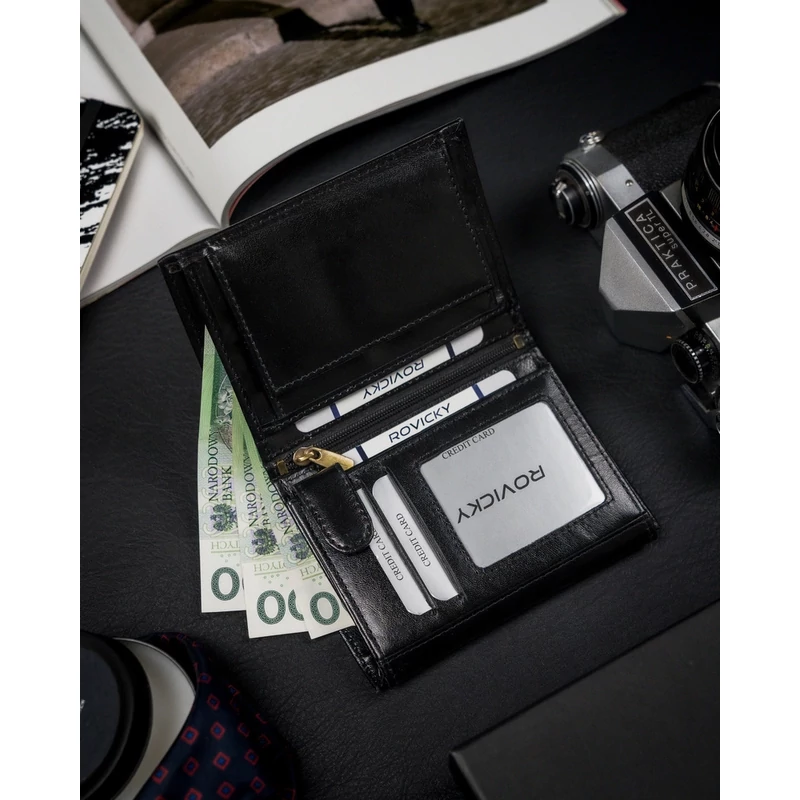 Férfi pénztárca a lengyel Rovicky® márkától , nagyon tartós, természetes szemcsés marhabőrből, finoman fényes. Hagyományos módon készült, puha és kellemes tapintású. Az ebből az anyagból készült pénztárcát választva biztos lehet benne, hogy évekig kitartó terméket vásárol!