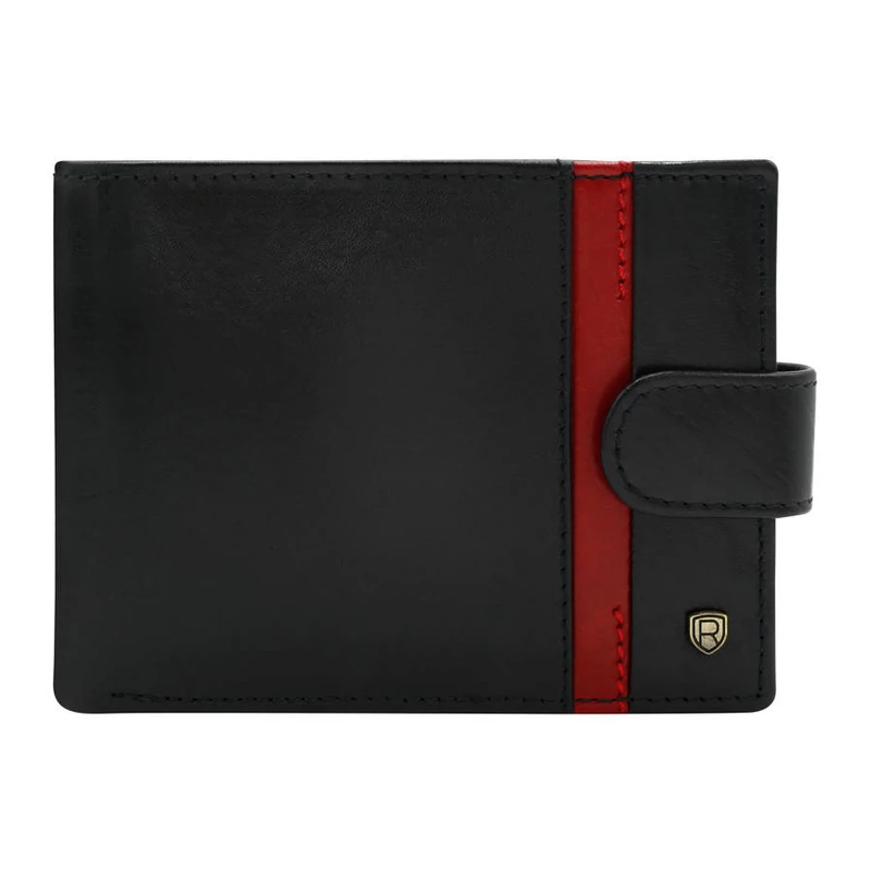 - Klasszikus fekete design | A pénztárca elejét elegáns piros csík díszíti;