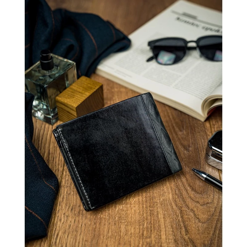 Valódi bőr férfi pénztárca Cavaldi® N7-IVT BLACK