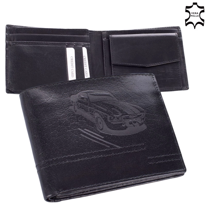 Bőr férfi pénztárca Autós mintával