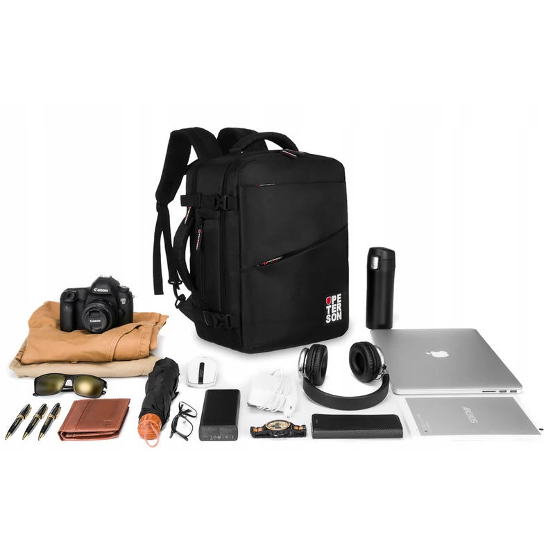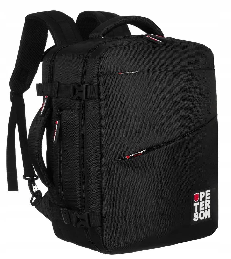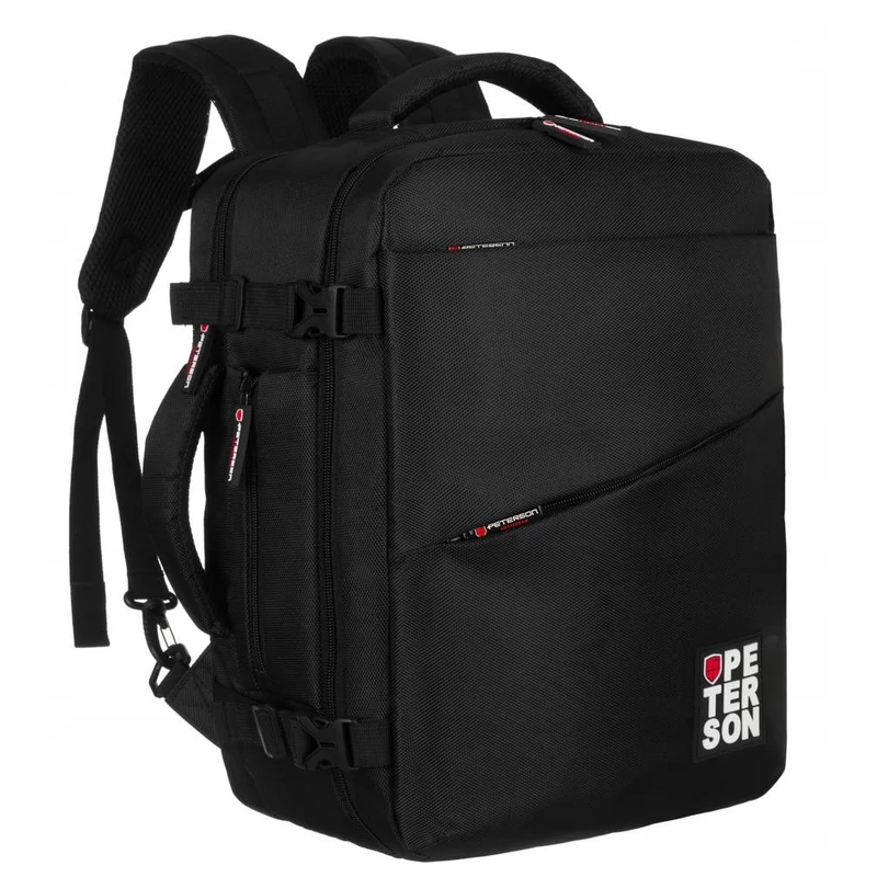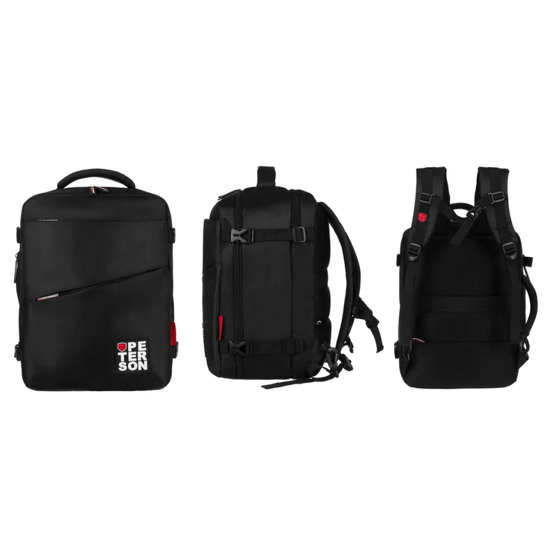 Peterson 3- Funkciós Utazó Hátizsák, WizzAir méretű 40x30x20cm, Fekete-Piros Színben / bővíthető