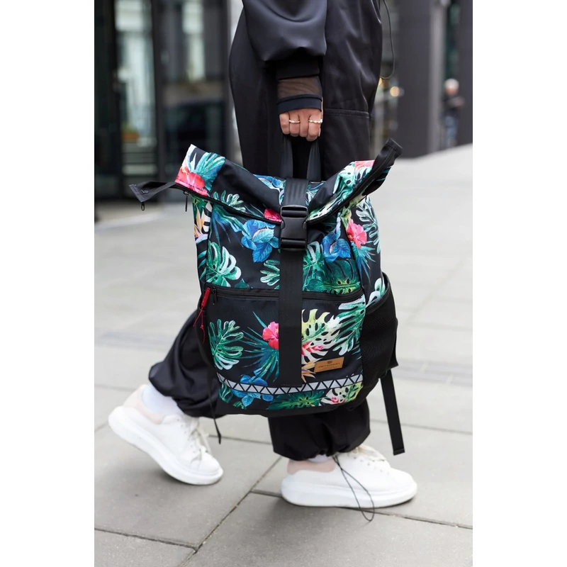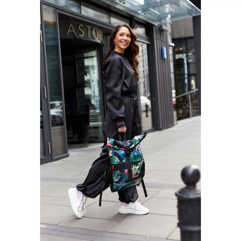 • Kiváló minőségű anyagból varrva. Belseje bélelt. Egyrekeszes hátizsák további zsebekkel az apró tárgyak számára - 4 külső és 1 belső. A hátizsák hossza egy csat segítségével rövidíthető.