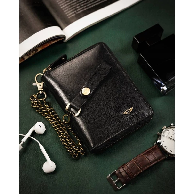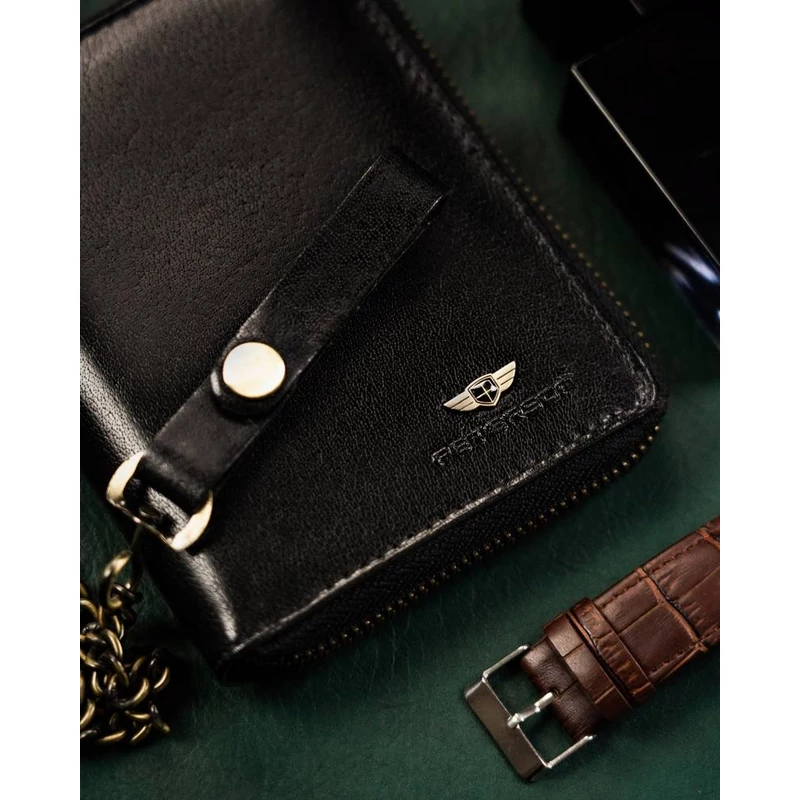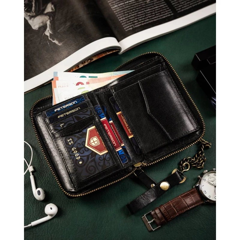 Nagy méretű férfi bőr pénztárca cipzárral - Peterson