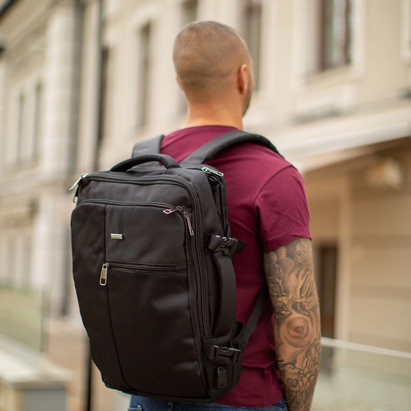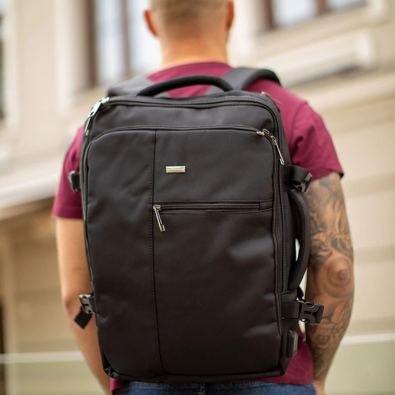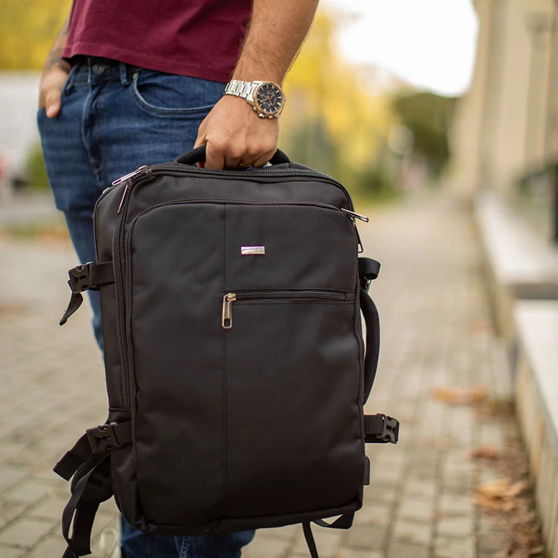 Bővíthető utazó hátizsák ruházathoz, laptophoz és személyes tárgyakhoz. Modern kialakítású modell. Rendkívüli precizitással, kiváló minőségű anyagokból készült. Tökéletes mindennapi használatra, munkához és utazáshoz.