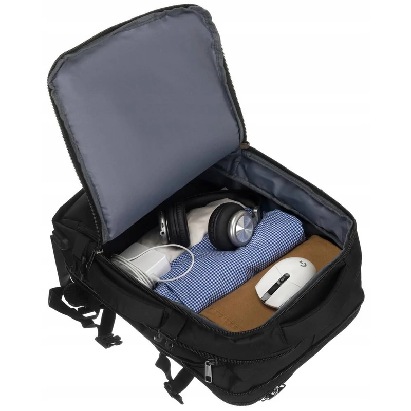 Három rekeszes hátizsák. Minden rekesz masszív kétirányú cipzárral záródik. A jól szervezett belső tér sok minden tárolását lehetővé teszi, a dokumentumoktól kezdve a laptopon, táblagépen, okostelefonon át a ruhákig.