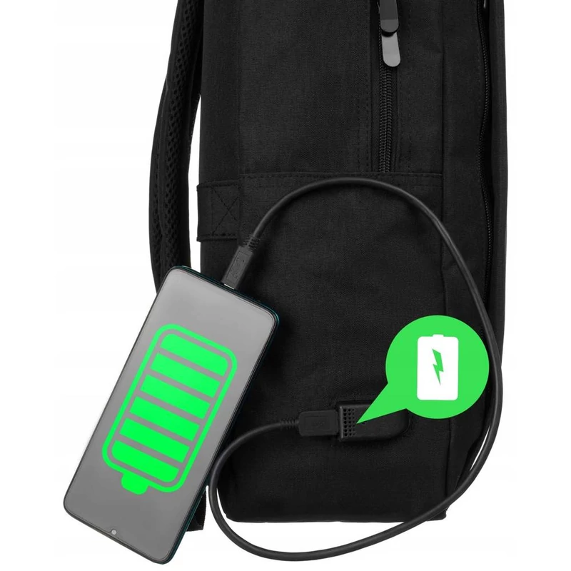 A bemutatott modell az elektronika szerelmesei által kedvelt kiegészítő funkciót ötvözi. USB porttal van felszerelve , amely lehetővé teszi az okostelefon gyors és kényelmes töltését, ahol csak szüksége van rá. Ráadásul töltés közben is használhatod okostelefonodat, ami rendkívül kényelmessé válik, ha utazás közben viszed magaddal a hátizsákot.