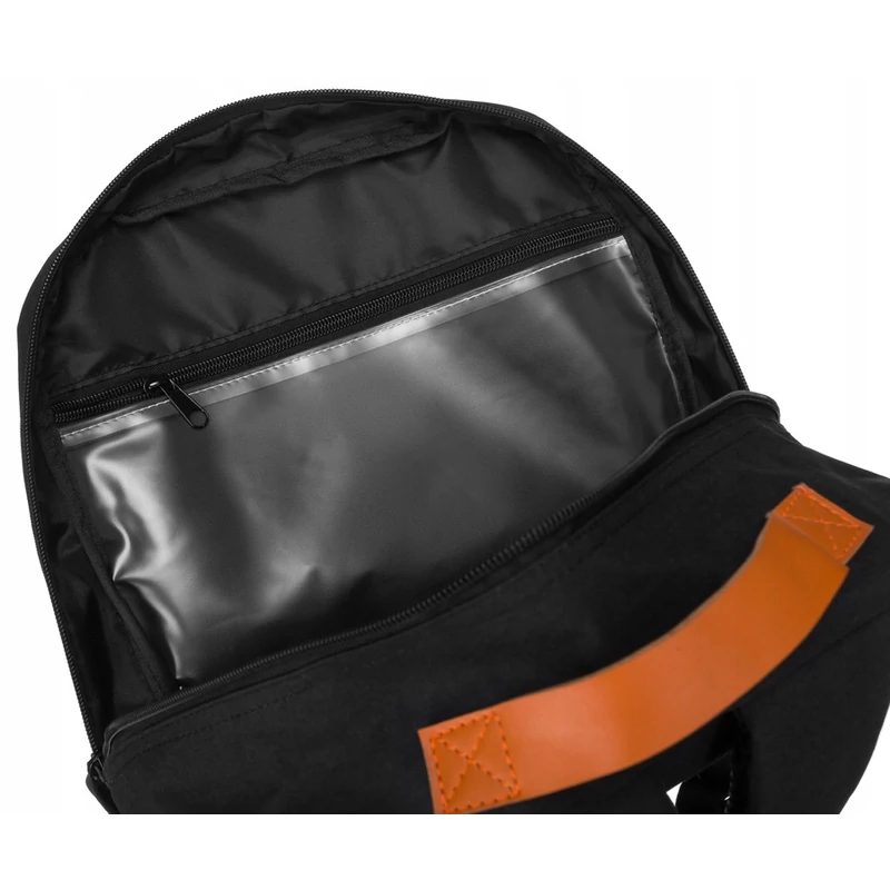 A kínált modell 1 tágas, tömör cipzárral zárható rekesszel rendelkezik. Belül 1 nagy, nyitott zseb található, amelybe könnyedén elfér laptopja vagy más hordozható eszköze. Ezen kívül a hátizsák 4 kicsi, nyitott zsebbel és 1 átlátszó zsebbel rendelkezik cipzárral.
