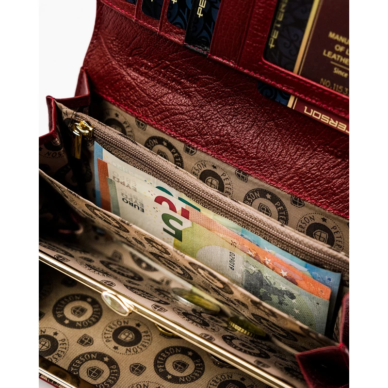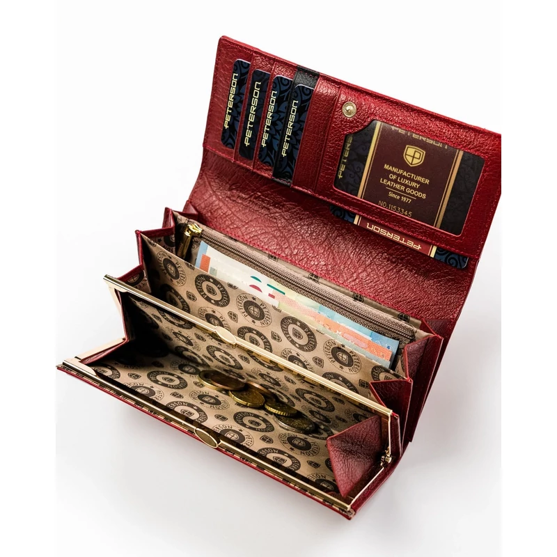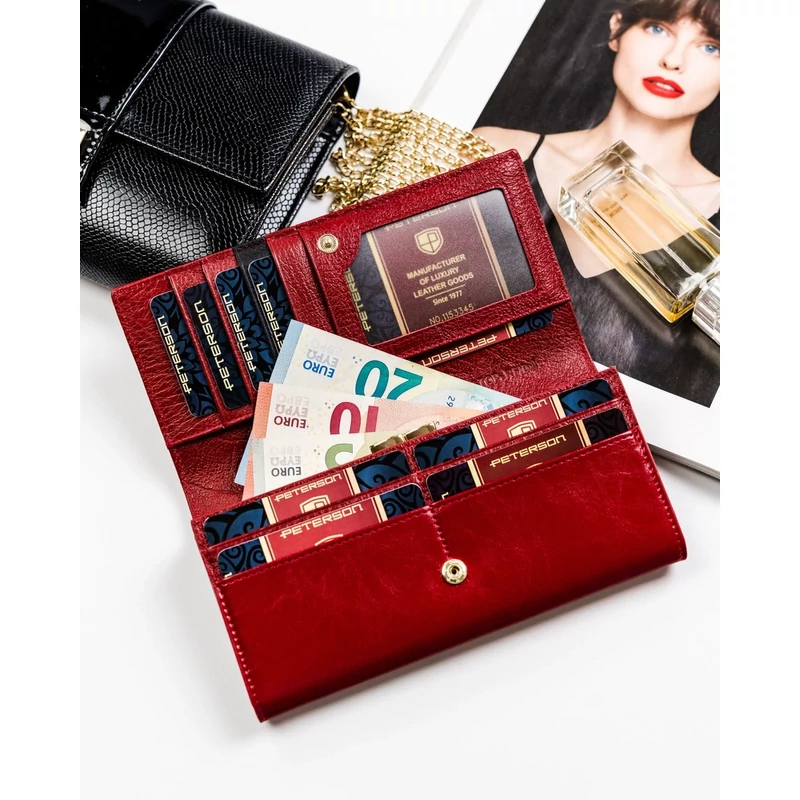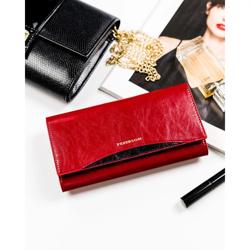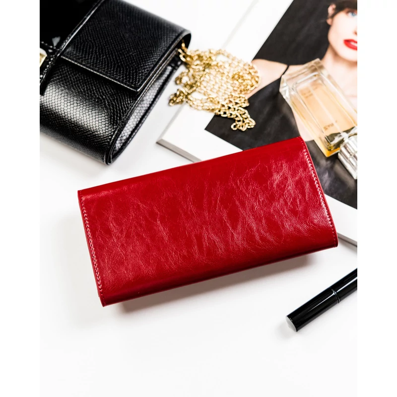 - Stílusos design | Klasszikus dizájnú pénztárca, időtálló piros színben, a fülén kis fekete betéttel. Az arany veretek elegáns kiegészítők, és jól passzolnak ehhez a színhez