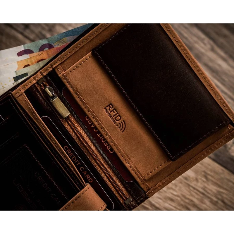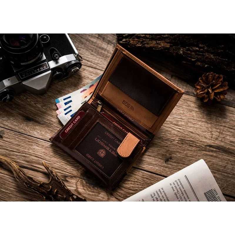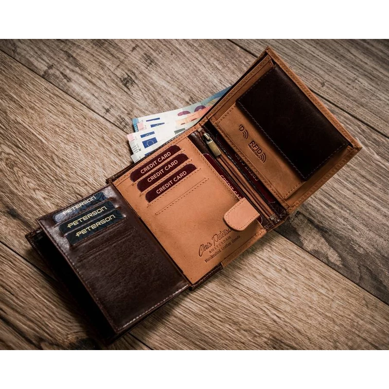 Nagyméretű, kétszínű férfi pénztárca valódi bőrből - Peterson