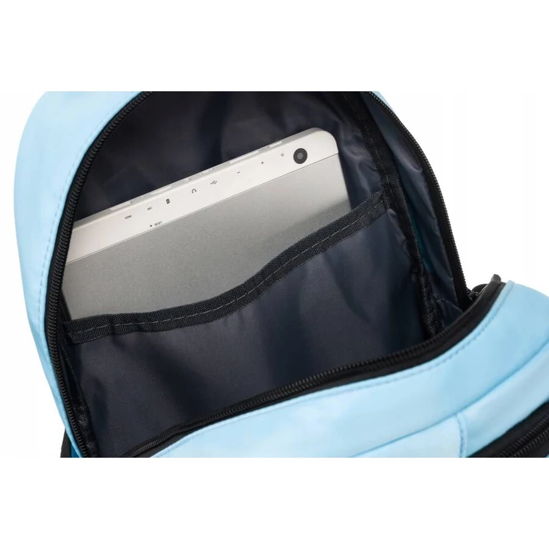 Kis mérete ellenére a hátizsák nagy, dupla cipzárral zárható rekesszel van felszerelve, amelyben 1 nyitott zseb is található .