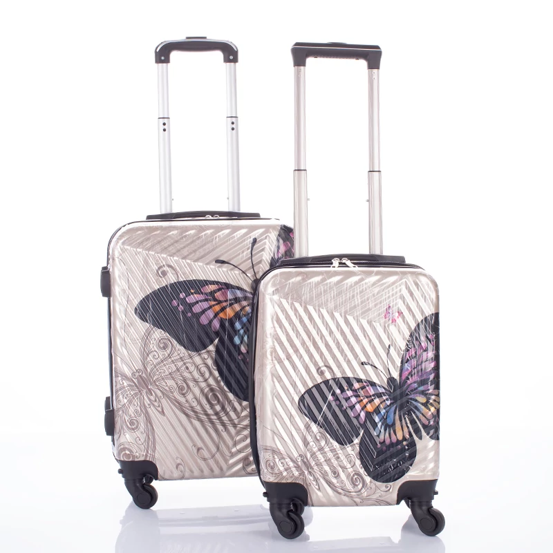 Pillangós keményfalú bőrönd szett 2 részes arany színben kivehető kerékkel