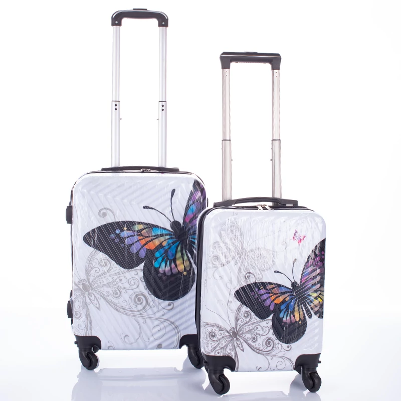 Pillangós keményfalú bőrönd szett 2 részes fehér színben kivehető kerékkel