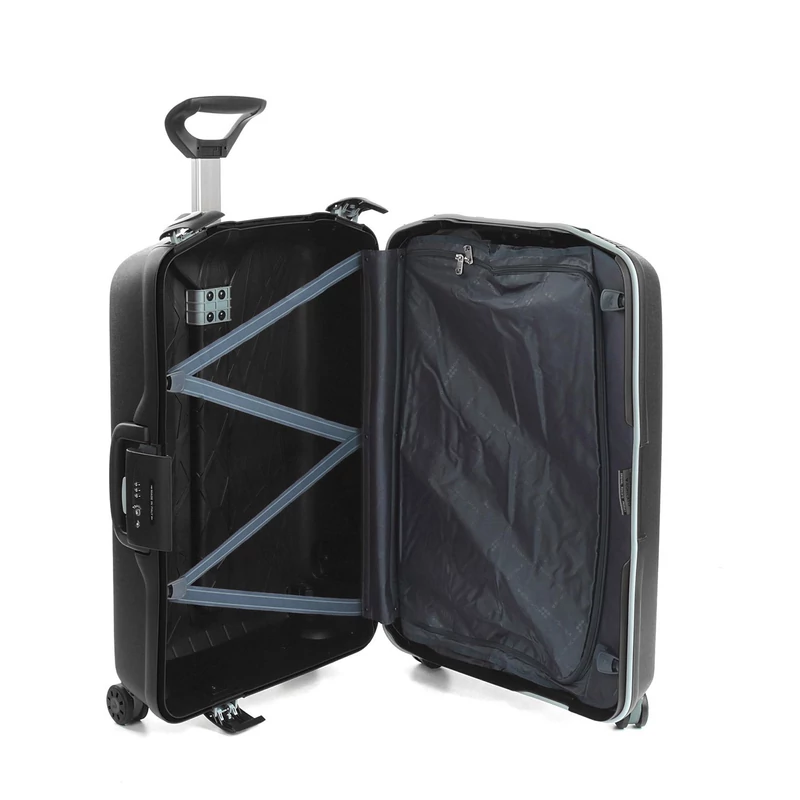 A Roncato Light bőröndöt Olaszországban gyártják: könnyű és fiatalos. Bolygókerekei strapabíróak, a bőrönd minden irányba könnyen mozgatható. Egy speciális fejlesztésnek köszönhetően a bőrönd egyszerre pillekönnyű és gyakorlatilag törhetetlen. Kulija és kézi fogója süllyesztett, teljesen belesimul a bőröndtestbe. A termék gyártásánál környezetbarát megoldásokat használtak. TSA számzárral ellátott, és 10 év garanciát vállal ezen bőröndtípusára a Roncato. Belsejében a ruhákat könnyen leszoríthatjuk a cikk-cakk pántos rögzítő segítségével. Igazán nyerő választás!