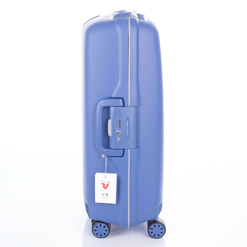 A Roncato Light bőröndöt Olaszországban gyártják: könnyű és fiatalos. Bolygókerekei strapabíróak, a bőrönd minden irányba könnyen mozgatható. Egy speciális fejlesztésnek köszönhetően a bőrönd egyszerre pillekönnyű és gyakorlatilag törhetetlen. Kulija és kézi fogója süllyesztett, teljesen belesimul a bőröndtestbe. A termék gyártásánál környezetbarát megoldásokat használtak. TSA számzárral ellátott, és 10 év garanciát vállal ezen bőröndtípusára a Roncato. Belsejében a ruhákat könnyen leszoríthatjuk a cikk-cakk pántos rögzítő segítségével. Igazán nyerő választás!