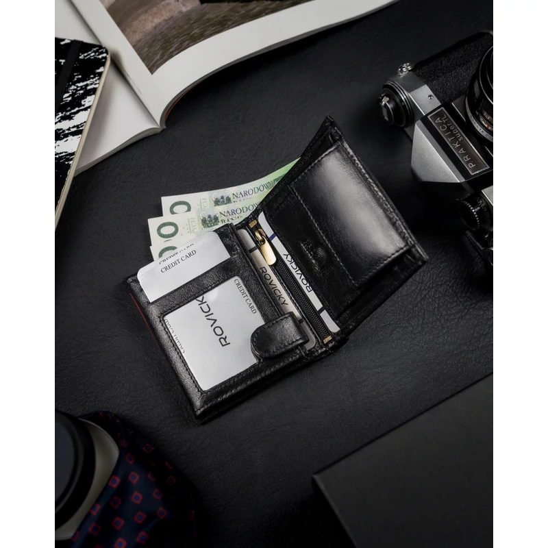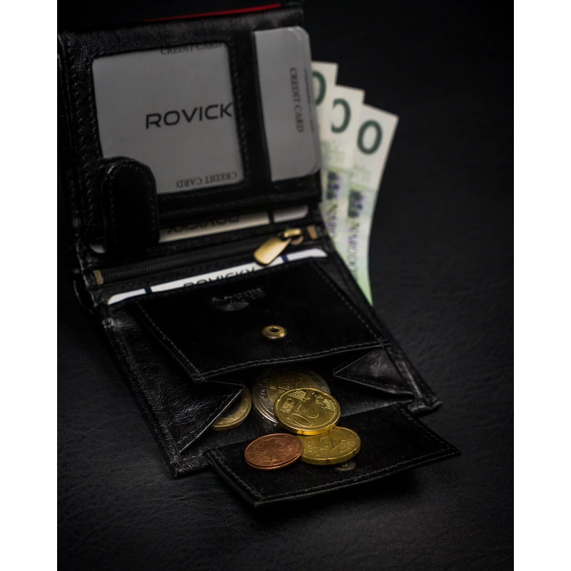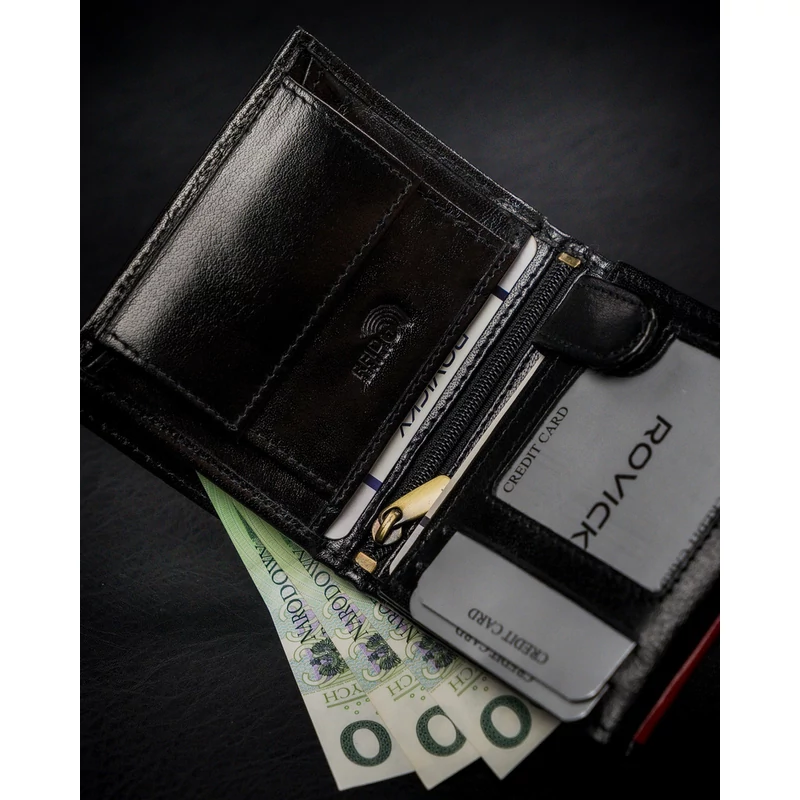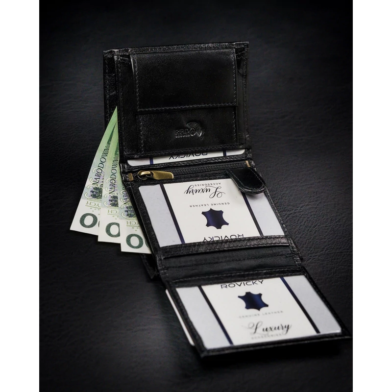 Férfi pénztárca a lengyel Rovicky® márkától , nagyon tartós, természetes szemcsés marhabőrből, finoman fényes. Hagyományos módon készült, puha és kellemes tapintású. Az ebből az anyagból készült pénztárcát választva biztos lehet benne, hogy évekig kitartó terméket vásárol!