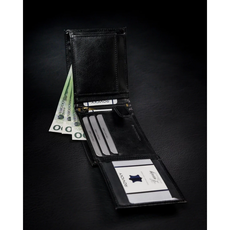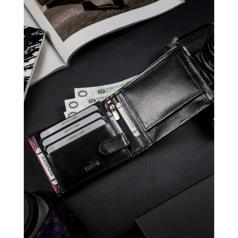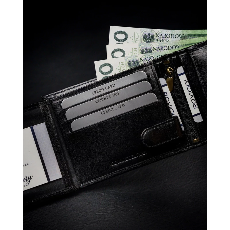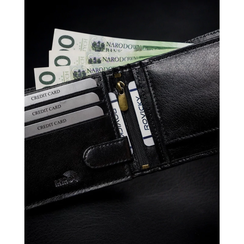 VALÓDI BŐRBŐL KÉSZÜLT FÉRFI PÉNZTÁRCA CIPZÁROS REKESSZEL - ROVICKY