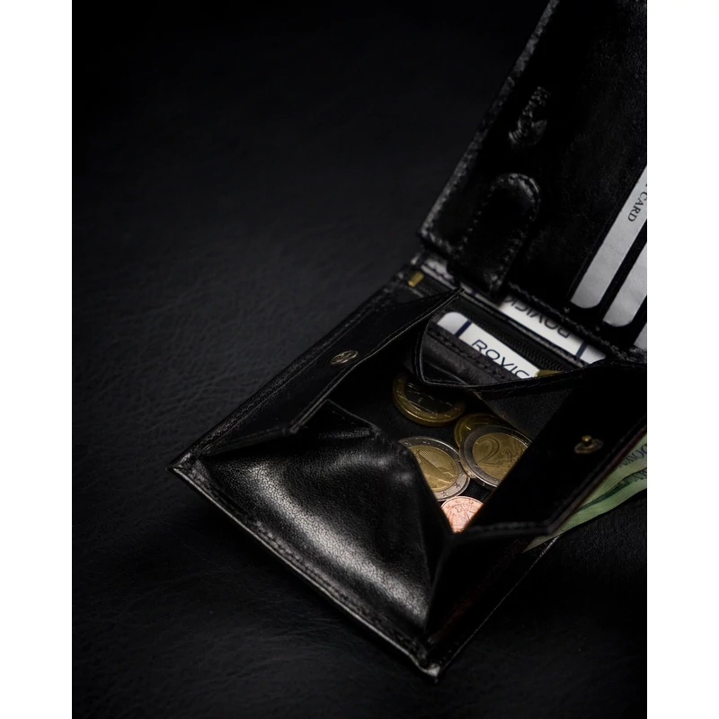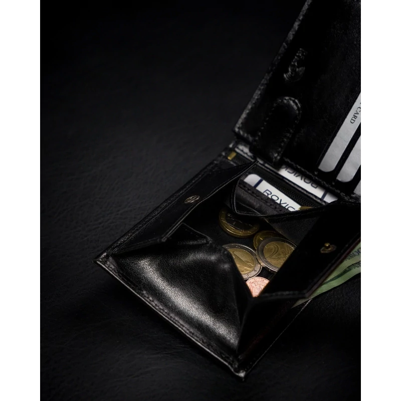 Férfi pénztárca a lengyel Rovicky® márkától , nagyon tartós, természetes szemcsés marhabőrből, finoman fényes. Hagyományos módon készült, puha és kellemes tapintású. Az ebből az anyagból készült pénztárcát választva biztos lehet benne, hogy évekig kitartó terméket vásárol!