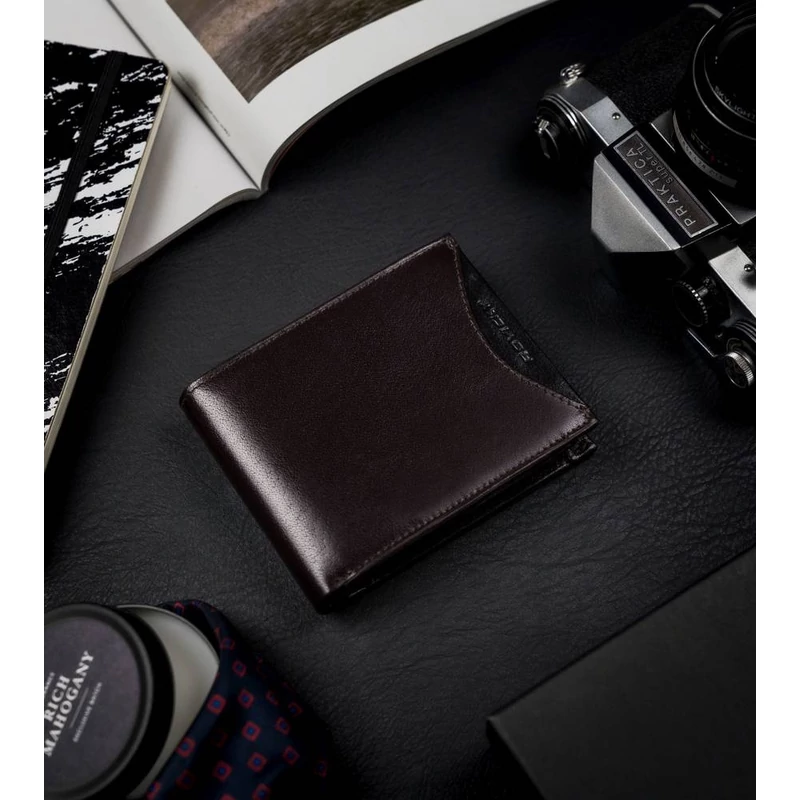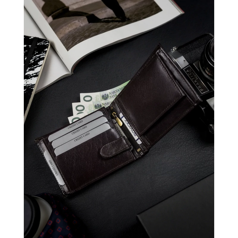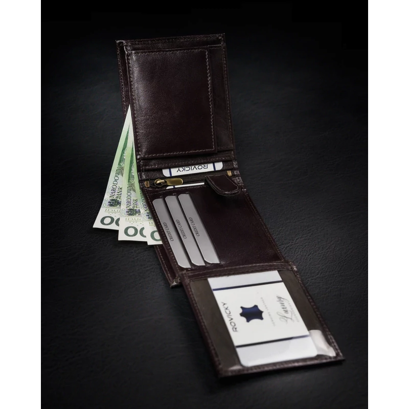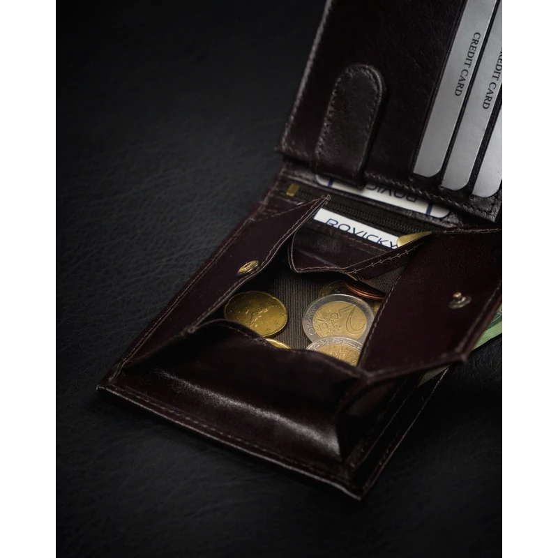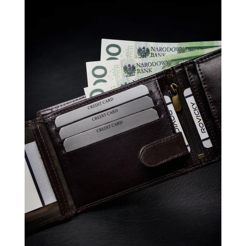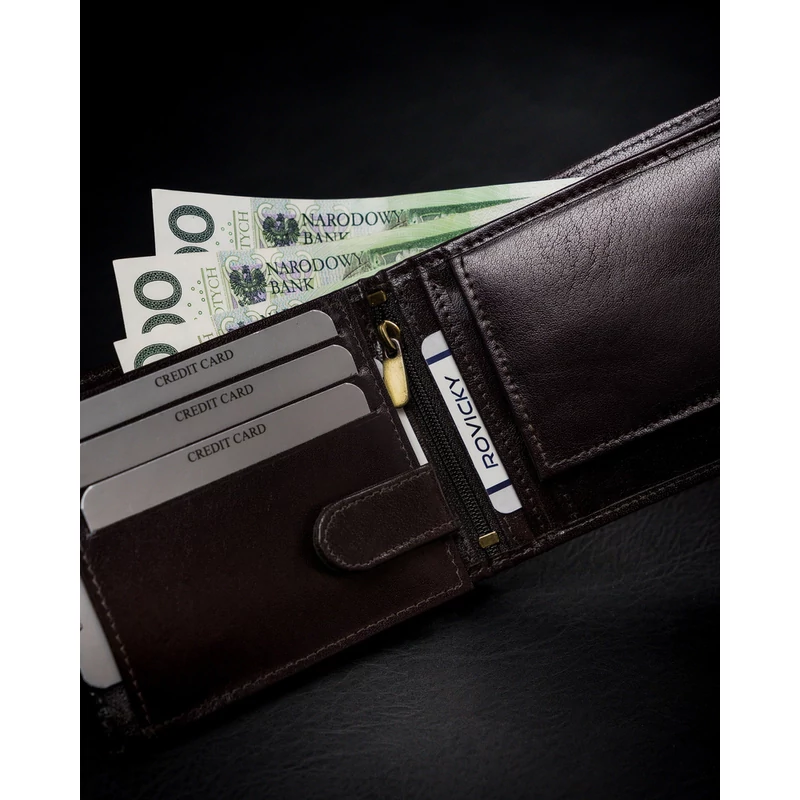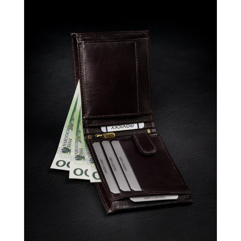 Valódi bőrből készült férfi pénztárca cipzáros rekesszel - Rovicky