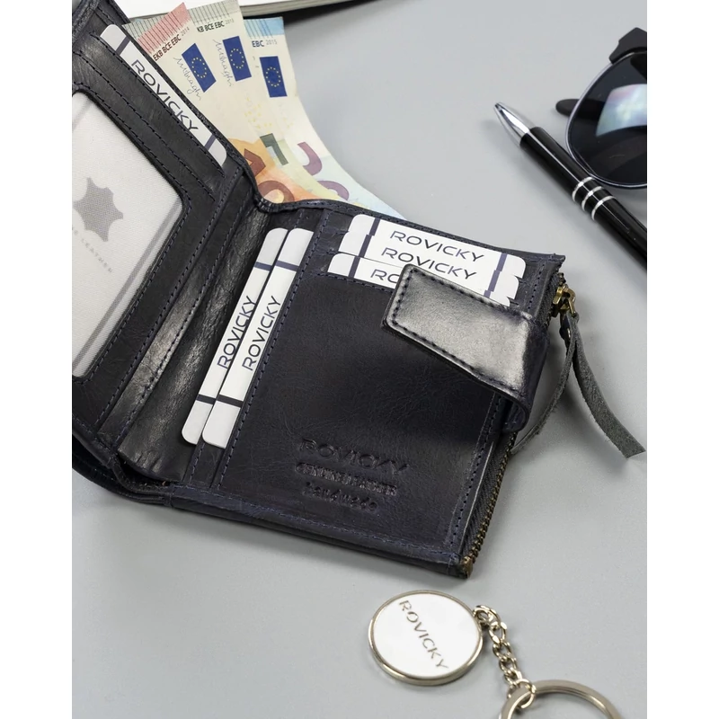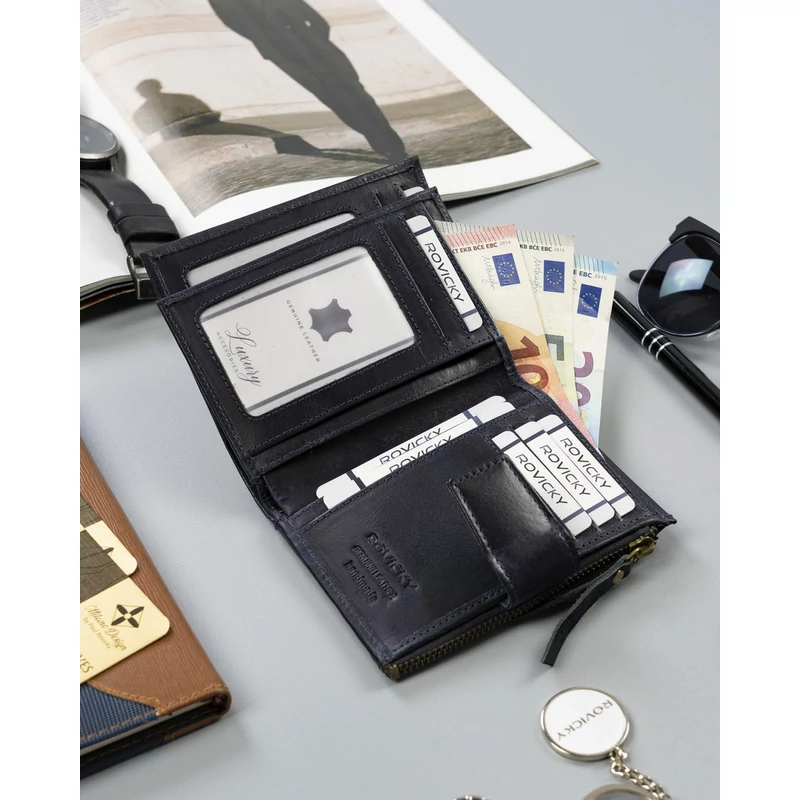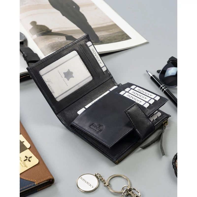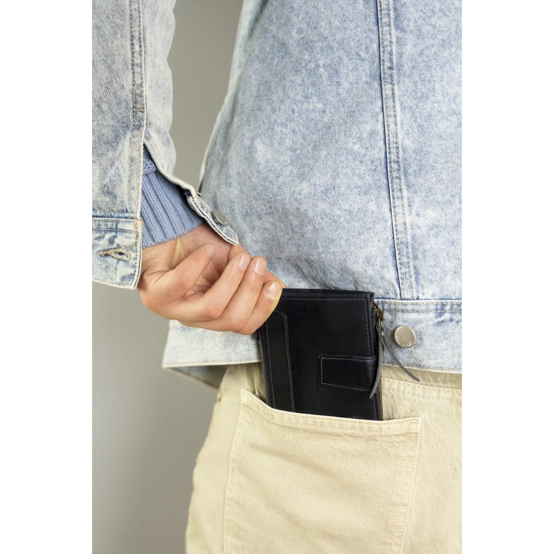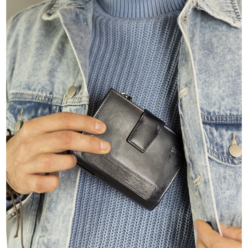 - Biztonságos | RFID STOP technológiával felszerelt, amely kártyaolvasóval védi a pénztárcát a tolvajoktól.