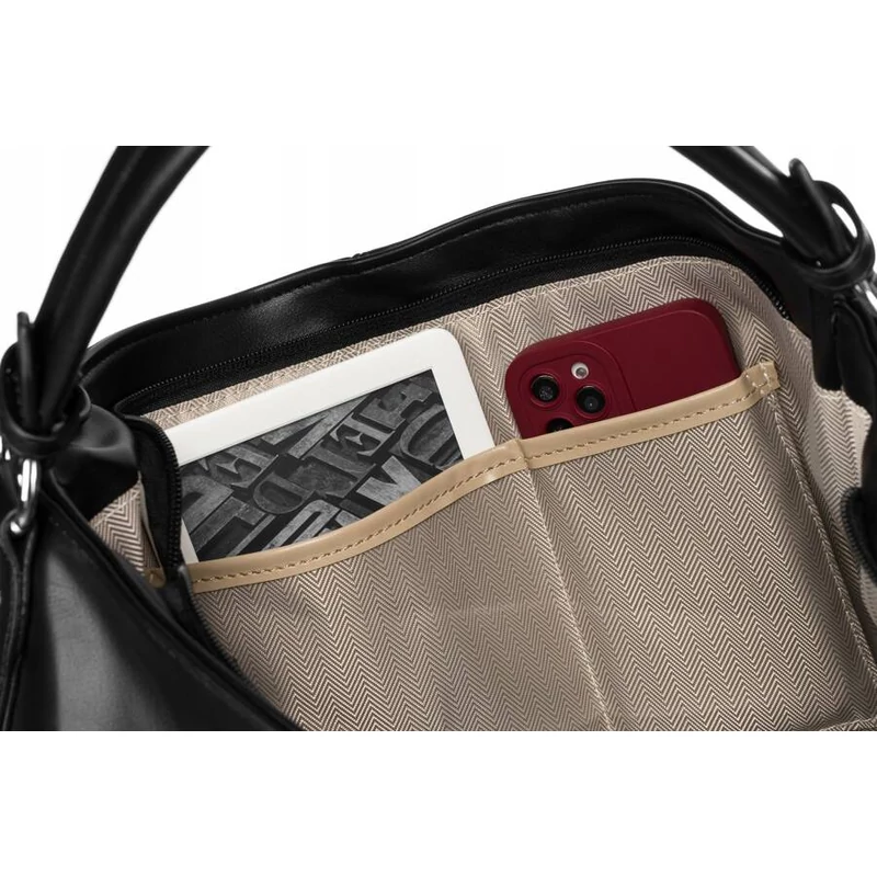 • Ebben a modellben a legjobb minőségű eco bőrt használtuk. A három további zsebbel ellátott, nagy, egyrekeszben elfér minden olyan tárgy, amit mindig magánál hord. A táska strapabíró béléssel van bélelve.