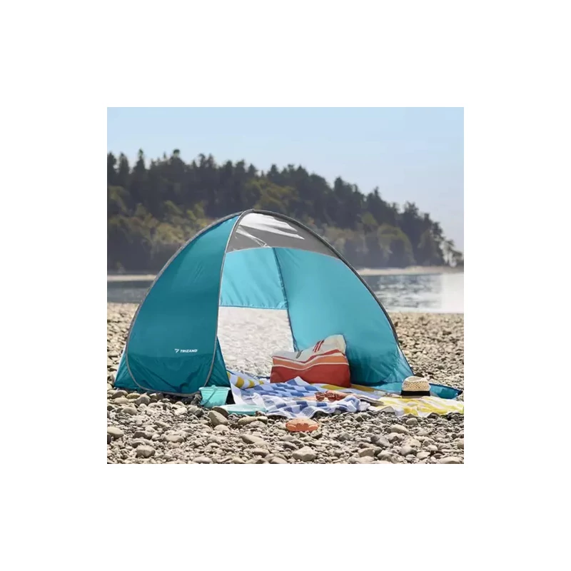 Magától szétnyílik - a sátor vázát rugalmas üvegszálas huzalok alkotják - ennek köszönhetően a burkolatból való kiemelés után 2 másodpercen belül szétnyílik Tökéletes kombinációja az esernyőnek és a paravánnak, de sokkal kényelmesebb a használata és sokkal kevesebb helyet foglal, ami a csomagok bepakolásánál fontos.