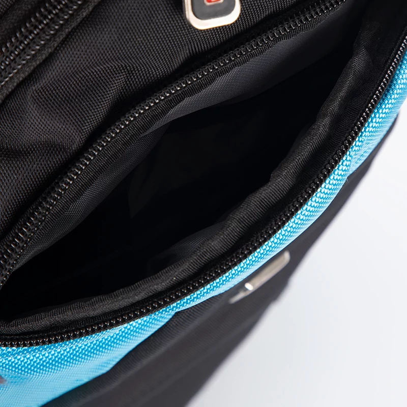 A hátsó zseb dupla, laptoptartós. Az első zsebben van külön rekesz az apróságoknak.