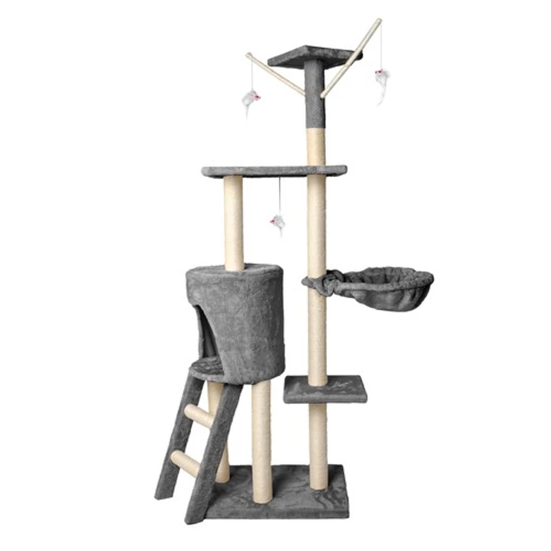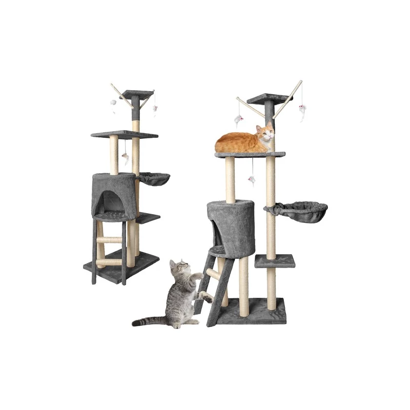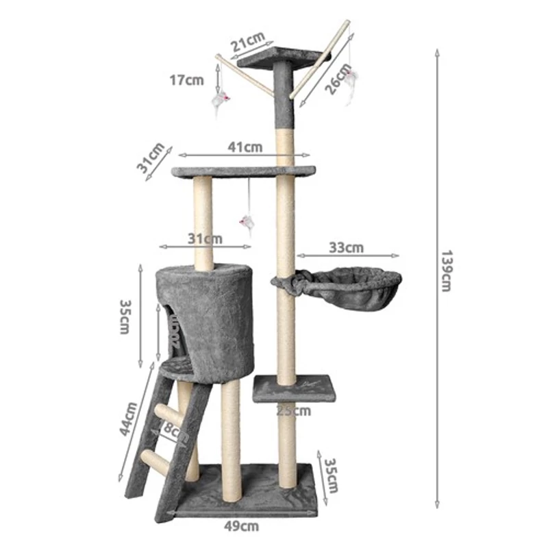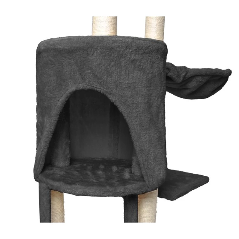• 5 SZINTES    - a fa alakú karcolóoszlop 138 cm magas, 5 emeletre lett osztva, melyen keresztül a macska szabadon mozoghat és lustálkodhat, de más macskákkal is leselkedhet és játszhat. A szilárd szerkezet széles alappal biztosítja a karcolóoszlop stabilitását. A fa fő előnye egy hangulatos ház, amelyhez két lépcső vezet. A cica szabadon pihenhet.