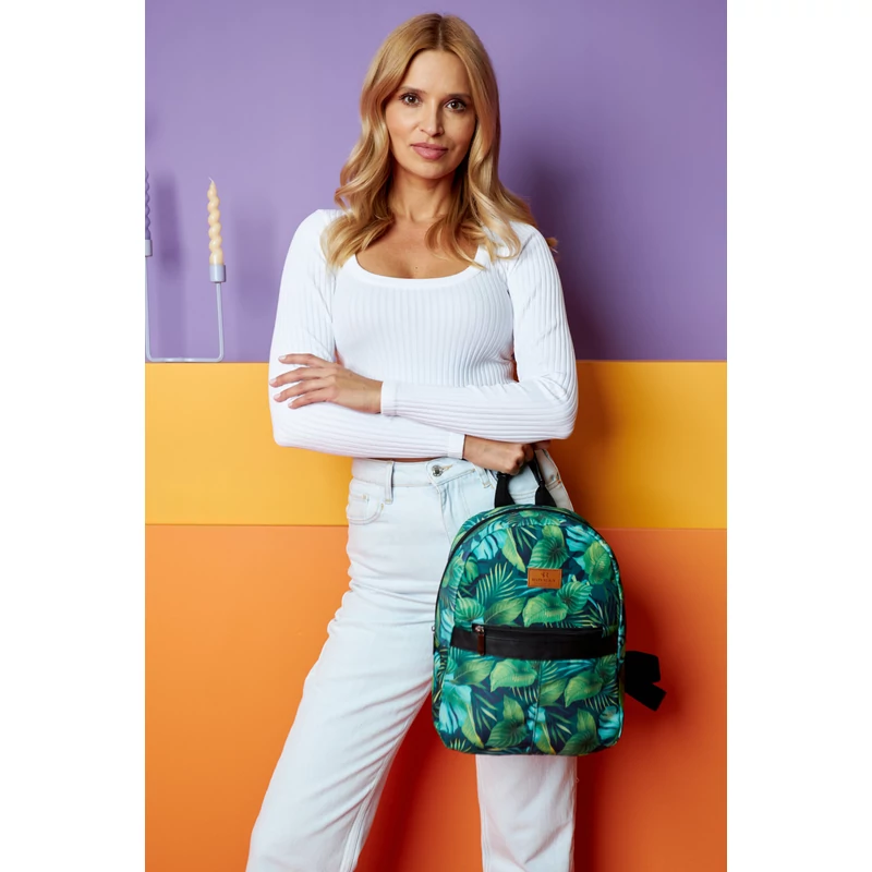 Egy klasszikus női hátizsákban elfér minden személyes tárgya, és nagyszerű viselési kényelmet is biztosít. A bemutatott modell 1 rekesszel és 2 további zsebbel van felszerelve . Az egyik zseb cipzárral záródik, a másik nyitott; tökéletes hely egy kis tablet számára (a rekesz mérete: 20x22 [cm]). Kis mérete ellenére könnyedén elfér benne pénztárca, telefon, kulcsok vagy néhány alapvető kozmetikum.