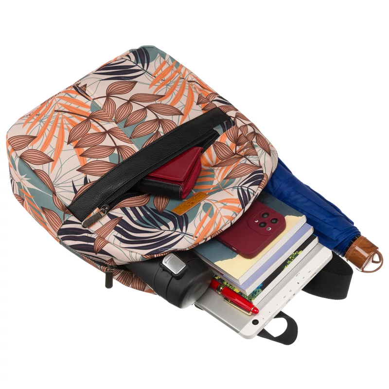 Egy klasszikus női hátizsákban elfér minden személyes tárgya, és nagyszerű viselési kényelmet is biztosít. A bemutatott modell 1 rekesszel és 2 további zsebbel van felszerelve . Az egyik zseb cipzárral záródik, a másik nyitott; tökéletes hely egy kis tablet számára (a rekesz mérete: 20x22 [cm]). Kis mérete ellenére könnyedén elfér benne pénztárca, telefon, kulcsok vagy néhány alapvető kozmetikum.