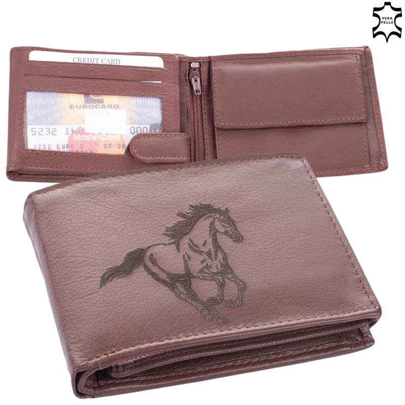 Valódi bőrből készült, barna színű férfi lovas pénztárca