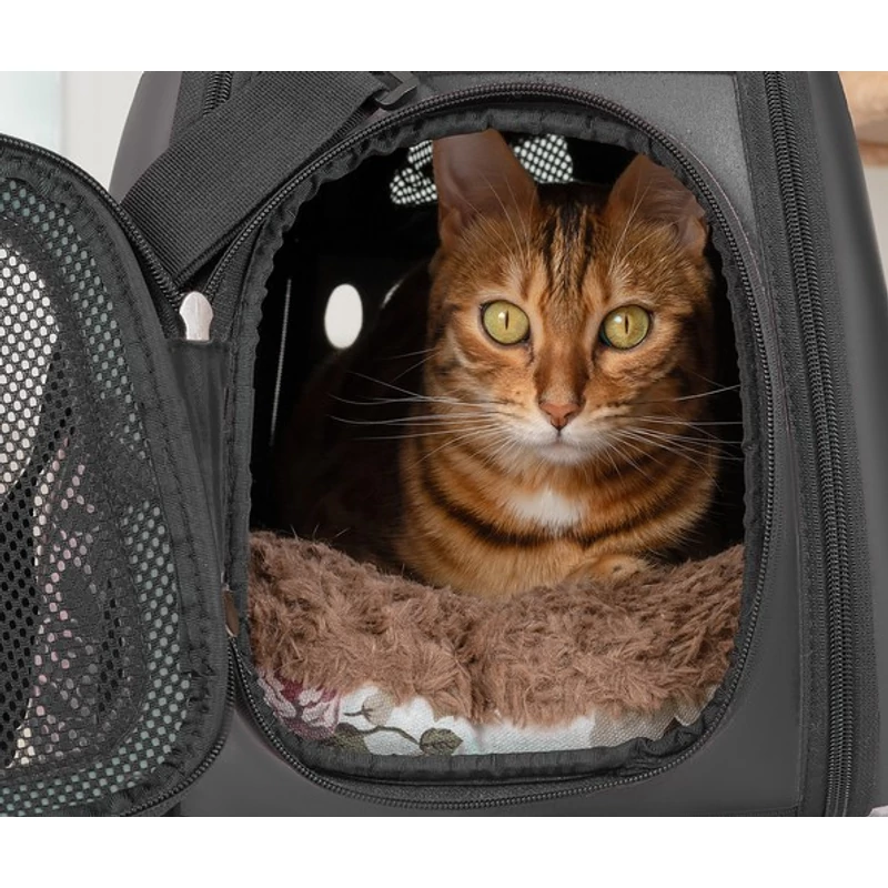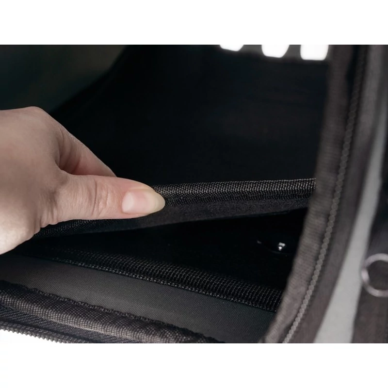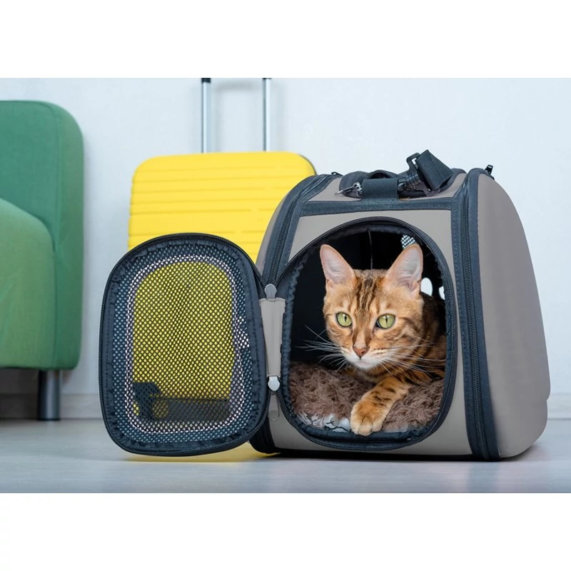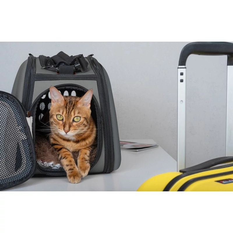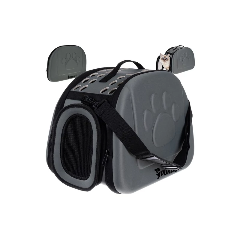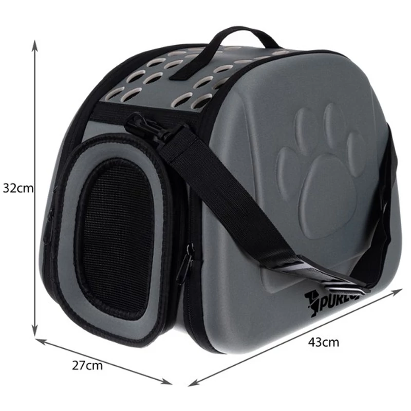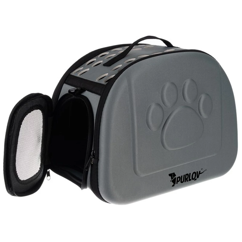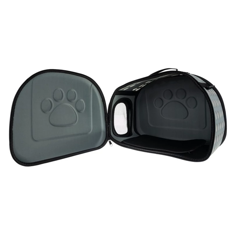Hordozópánt és összecsukható szállítószalag - állítható vállpánt teljesen levehető a táskáról, valamint ergonomikus fogantyú a kényelmes szállításhoz kedvence teszi könnyen használhatóvá. A hordozó elején és 2 oldalán elhelyezett extra kényelmes cipzárak megkönnyítik az állat be- és kilépését. A táska kis méretre összehajtható, így rendkívül könnyen tárolható.