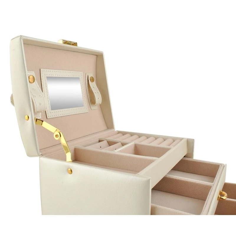 A kisebb tárgyakat, például medálokat, fülbevalókat és gyűrűket tökéletesen kiszolgálják a speciálisan kialakított, tekercs alakú rekeszek, amelyek stabilan tartják az apró értéktárgyakat. A tükör mellett elhelyezett, pattintható pántok lehetővé teszik a karkötők, láncok stb. tárolását, védve azokat az elvesztés ellen. A pántokhoz több sminkkefét vagy fülbevalót is rögzíthet a speciális lyukaknak köszönhetően.