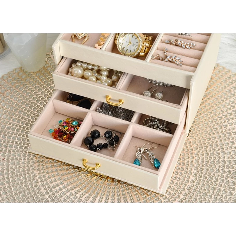 A praktikus doboz 20 különböző rekesszel és mélyedéssel rendelkezik, amelyeknek köszönhetően ellenőrizheti gyűjteménye rendjét . A rekeszek mellett a láda 3 egymástól függetlenül behúzható fiókkal is rendelkezik. A rekeszek különböző méretűek, és tökéletesen alkalmasak órák, karkötők, láncok, valamint fülbevalók, de akár érmék vagy fontos adatokat tartalmazó pendrive-ok elrejtésére is.