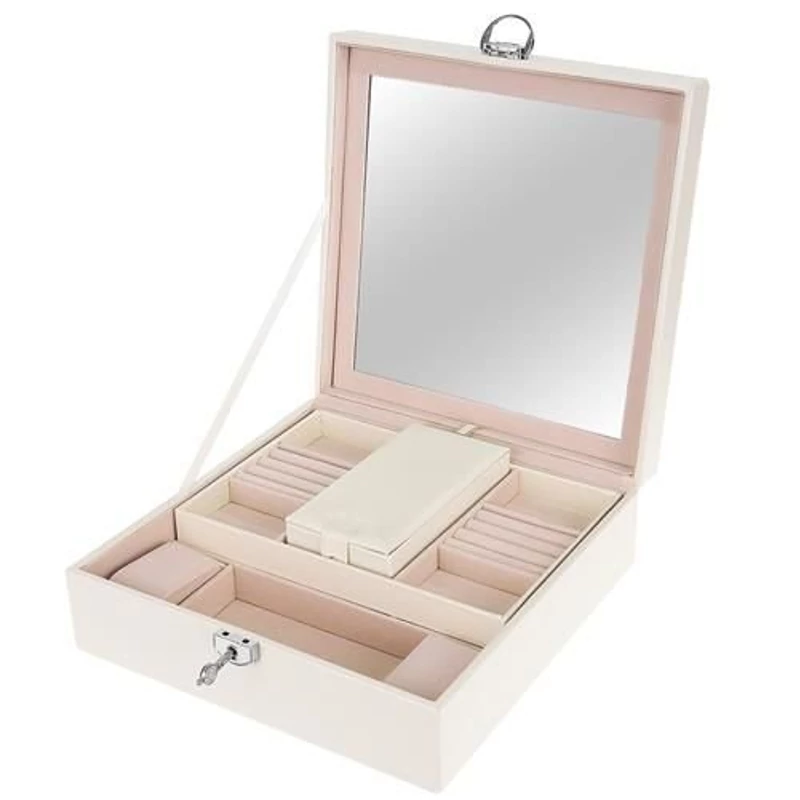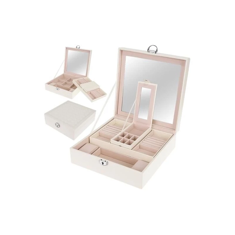 • TARTÓS  - az ékszerdoboz a következőkből áll: egy levehető fedél 2 rekesszel, görgőkkel a gyűrűk számára, 4 rekesz egyéb ékszerek számára, egy kivehető kazetta. Alatta 6 további rekesz, 2 betét karóráknak vagy karkötőknek és 1 nagy, téglalap alakú rekesz nagyobb tárgyaknak. A rekeszek puha anyaggal vannak bélelve, hogy megóvják a finom ékszereket a karcolásoktól.