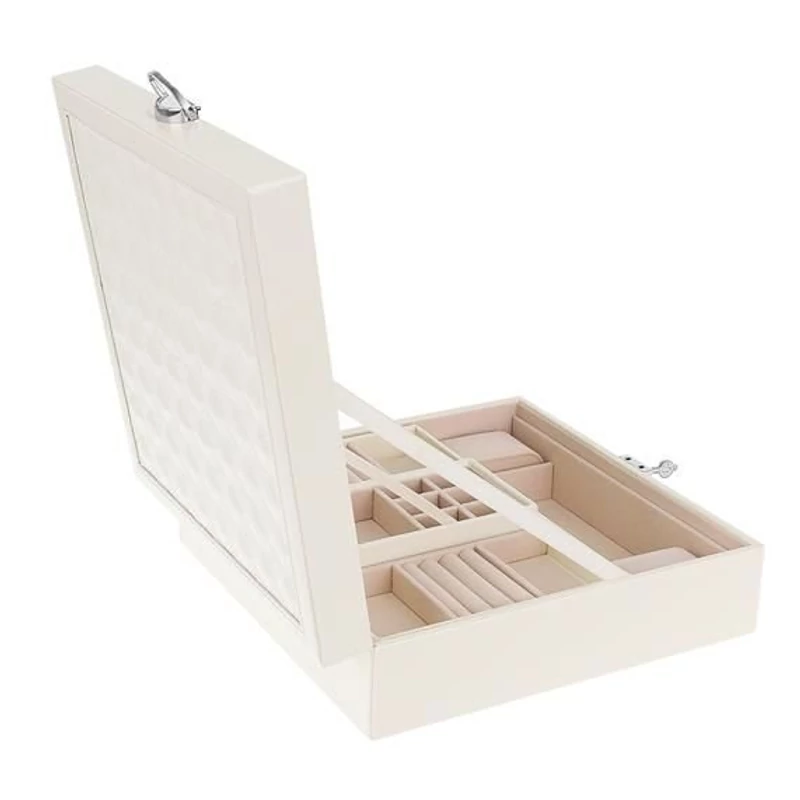 • KISZERELHETŐ KAZETTA   - a csomagtartóban az első szinten található egy kivehető kazetta, amely zárral záródik. 6 kisebb és 1 nagy ülés van benne. Kiváló választás néhány nyaklánc, fülbevaló, gyűrű vagy karkötő elviteléhez egy utazásra . Könnyen elfér bármilyen pénztárcában / kozmetikai táskában, és lehetővé teszi, hogy mindig magánál legyen.