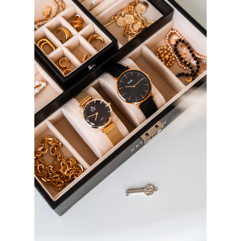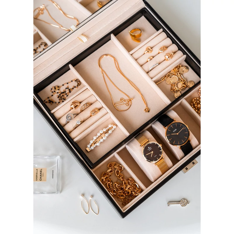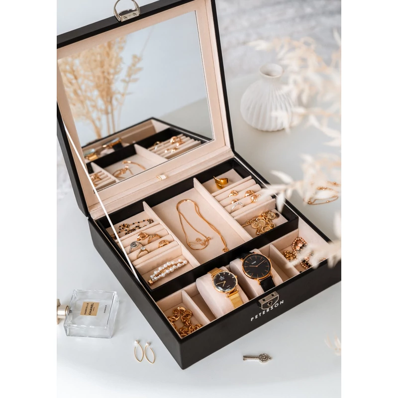 A nagyszámú rekesz és bemélyedés segít abban, hogy ékszerkollekcióját tökéletesen rendben tartsa. A belseje puha anyaggal bélelt, hogy megóvja a finom és értékes tárgyakat a karcolásoktól. Használjon egy kifejezetten erre a célra kialakított dobozt, és élvezze értékeit tökéletesen rendezve, biztonságosan és egy helyen kiállítva.