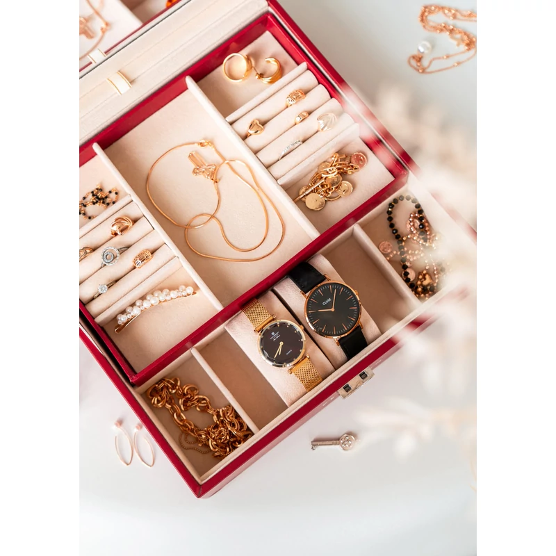 A nagyszámú rekesz és bemélyedés segít abban, hogy ékszerkollekcióját tökéletesen rendben tartsa. A belseje puha anyaggal bélelt, hogy megóvja a finom és értékes tárgyakat a karcolásoktól. Használjon egy kifejezetten erre a célra kialakított dobozt, és élvezze értékeit tökéletesen rendezve, biztonságosan és egy helyen kiállítva.