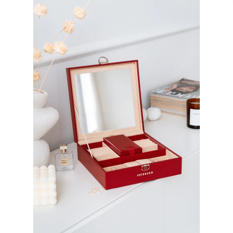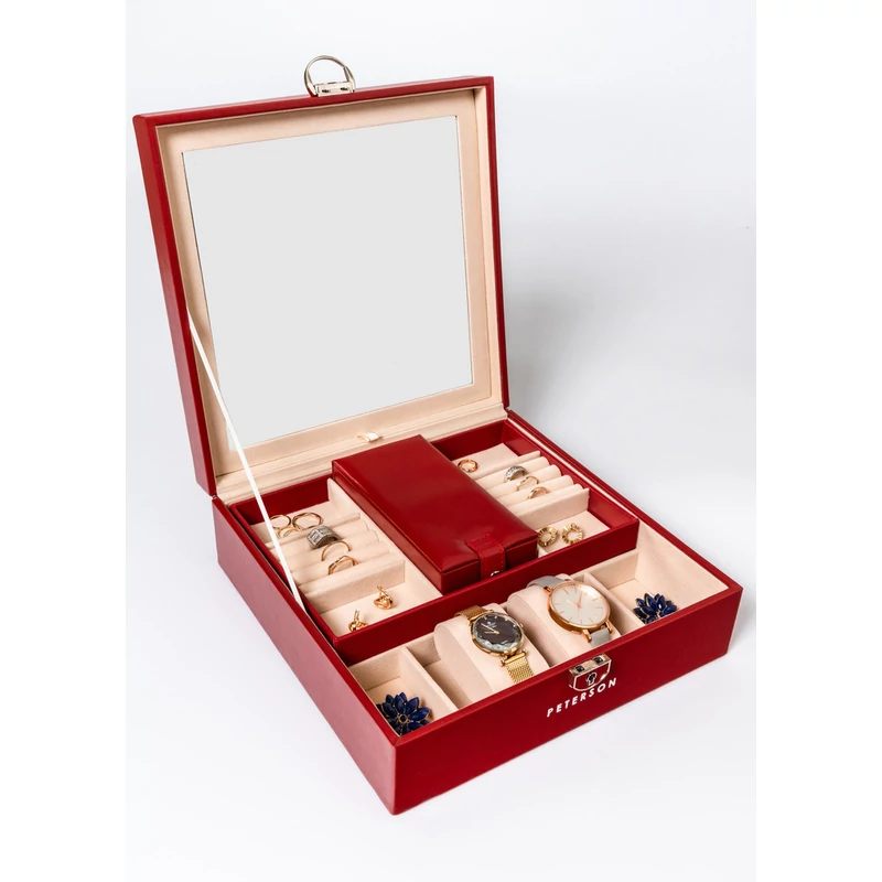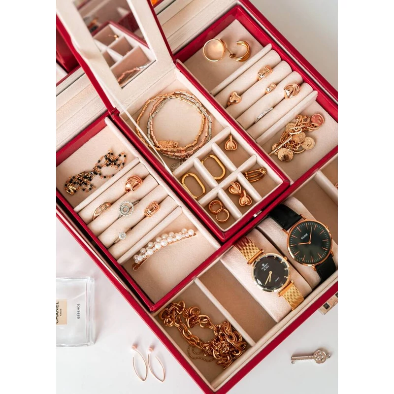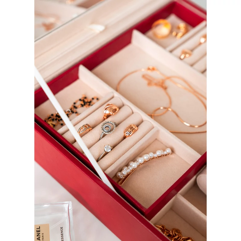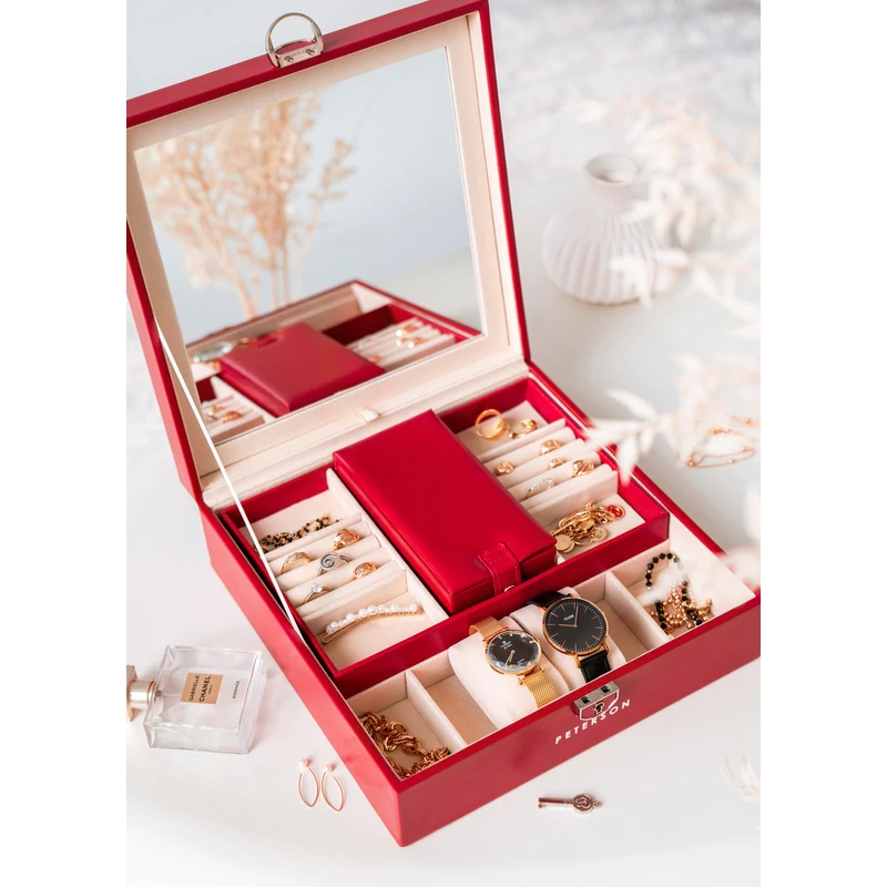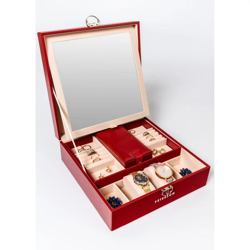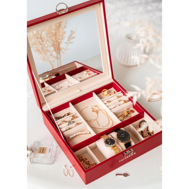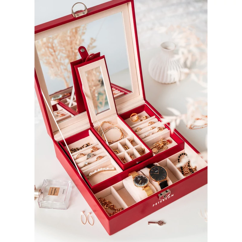 Belül van egy kis tok, amit bármikor kivehetsz! Ez egy praktikus módja annak, hogy utazás közben magával vigye kedvenc ékszereit. A tok kis tükörrel és rekeszekkel van felszerelve az ékszerek válogatásához.
