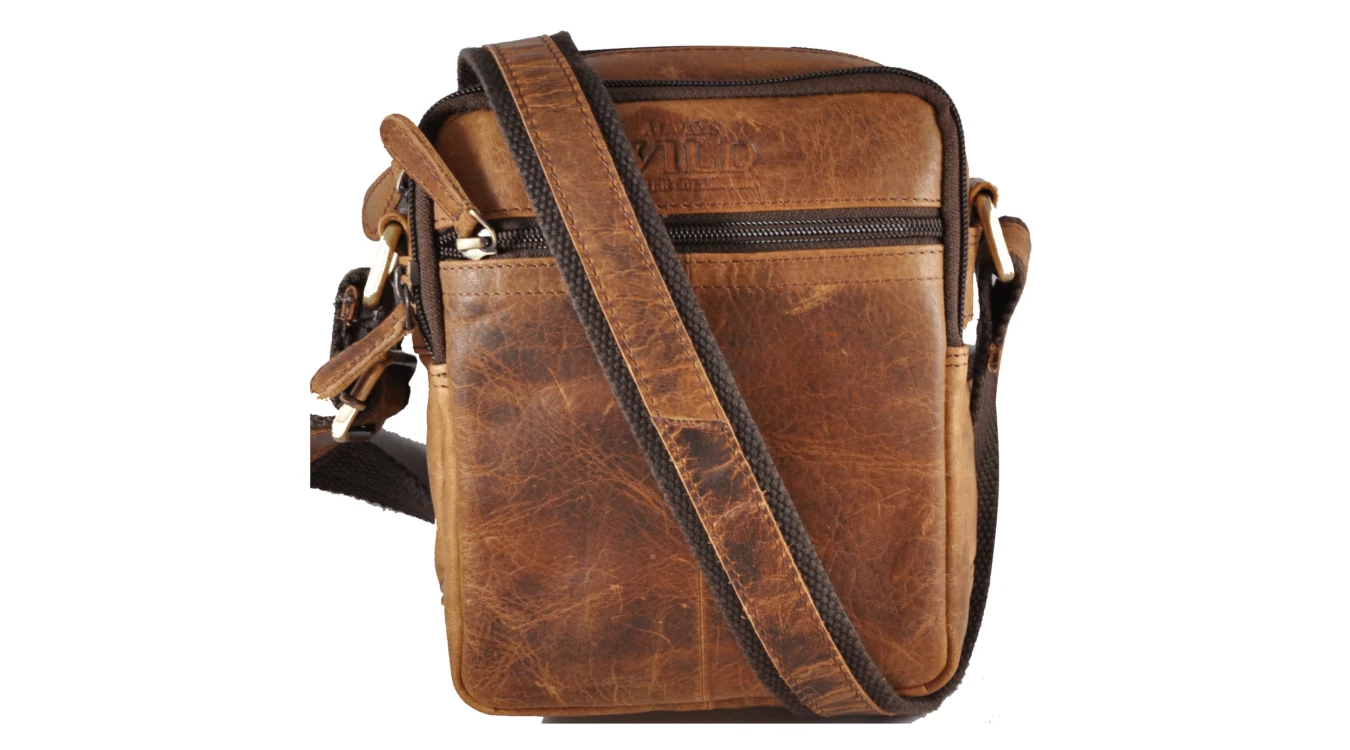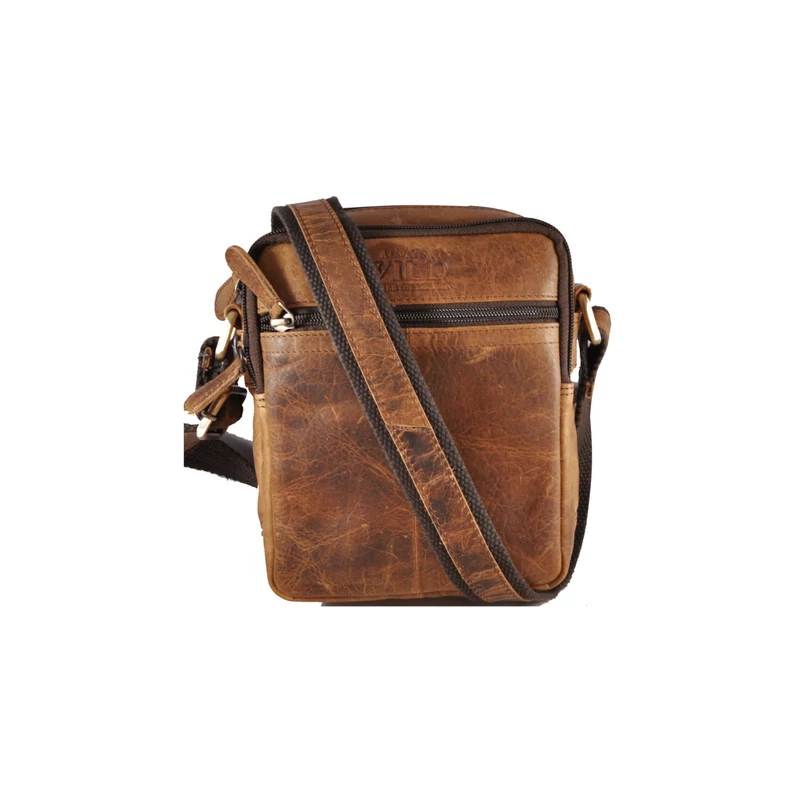 Kiváló minőségű férfi táska, mely "zsíros" bőrből ("pull up" bőrből) készült. "Always Wild" felirat díszíti. Két cipzáras rekesszel rendelkezik. Az elülső zsebben 3 darab kártyatartó van. A hátsóban egy további kisebb, nyitott zseb található, amibe például kulcsok férnek, és egy cipzáras zseb - ide érdemes nagyobb értékű tárgyainkat rakni, mivel kettő cipzár is védi. Az elején található egy további cipzáras zseb. Ideális mindennapi használatra. Keresztben, vállon átvetve hordható. Pántja állítható méretű.