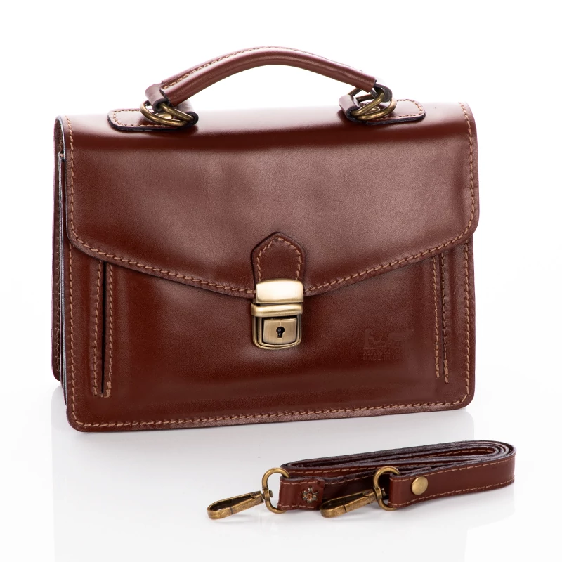 Valódi bőrből készült, elegáns autóstáska kézi fogóval. Több rekeszes, merev tartású táska. Átlátható, könnyen kezelhető és használható. Tökéletesen elférnek benne legfontosabb személyes dolgaink, mint például mobiltelefon, pénztárca, kulcsok, személyes okmányok. Belseje négy különálló rekeszből áll, kívül pedig egy cipzáras zsebe van. Kulccsal zárható a táska. (A kulcs a táska tartozéka). Hosszú pántot is küldünk a táskához.